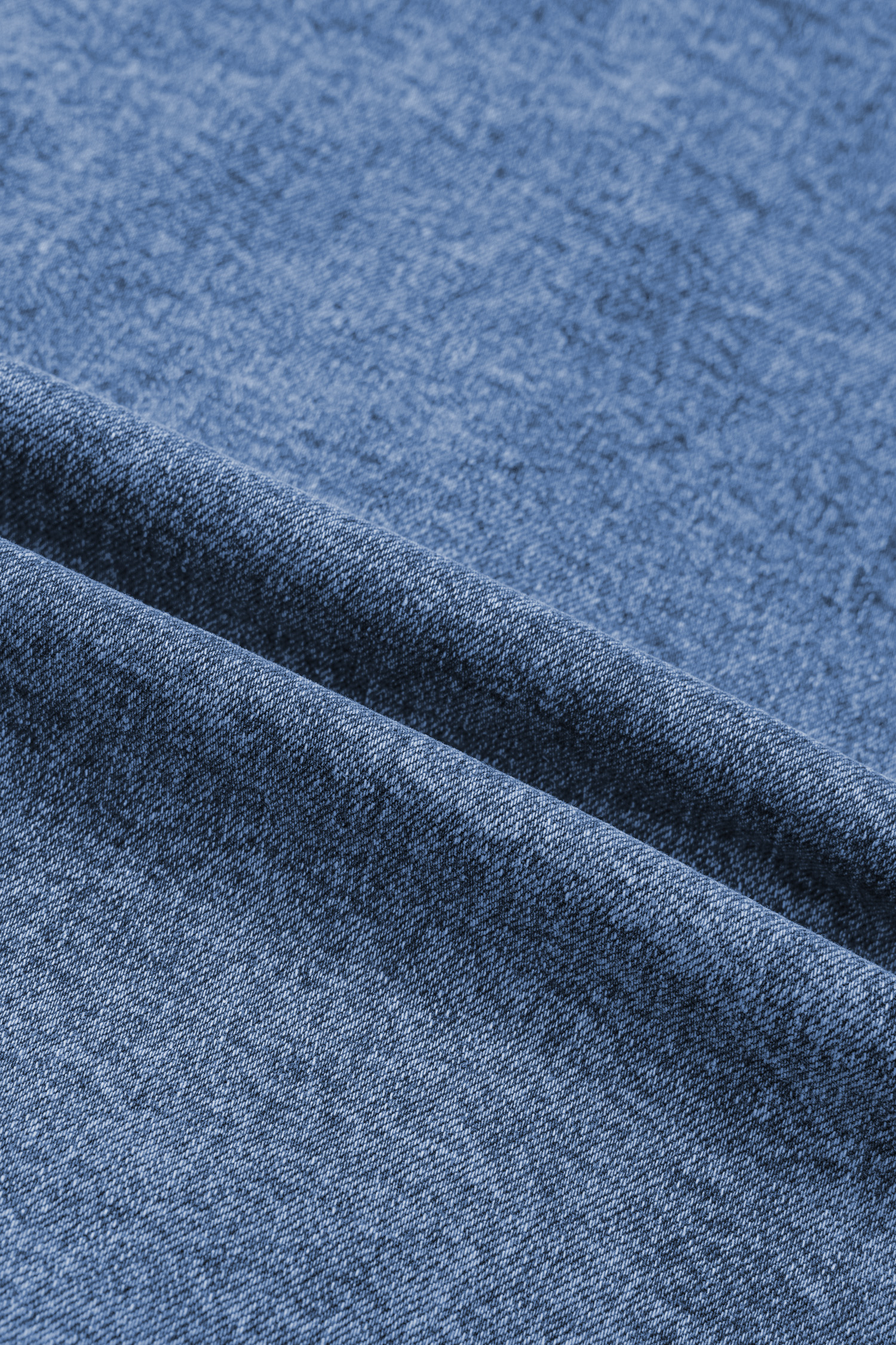 - Buttoned front denim vest features a sleek slit detail for modern edge.