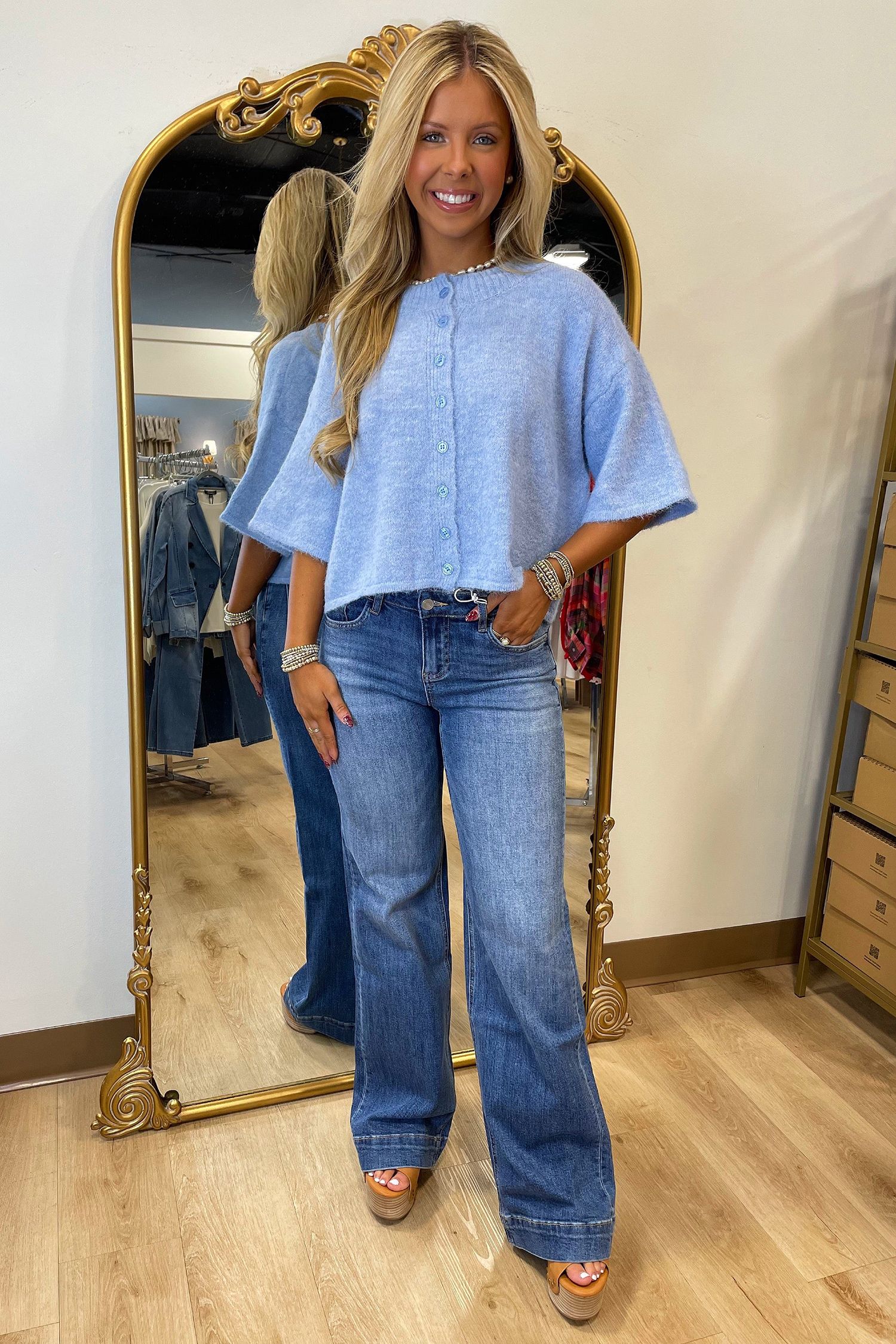 Be the first to review “Beau Blue 3/4 Sleeve Boxy Knit Button Down Sweater Cardigan”