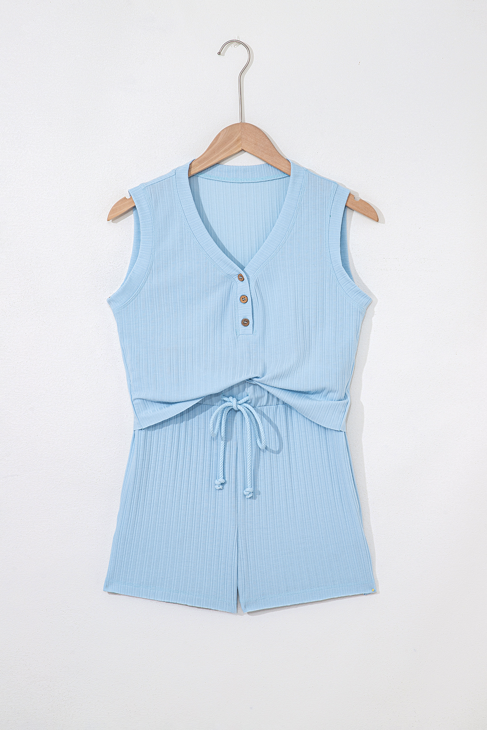 Embrace a touch of elegance with a buttoned V-neck design.