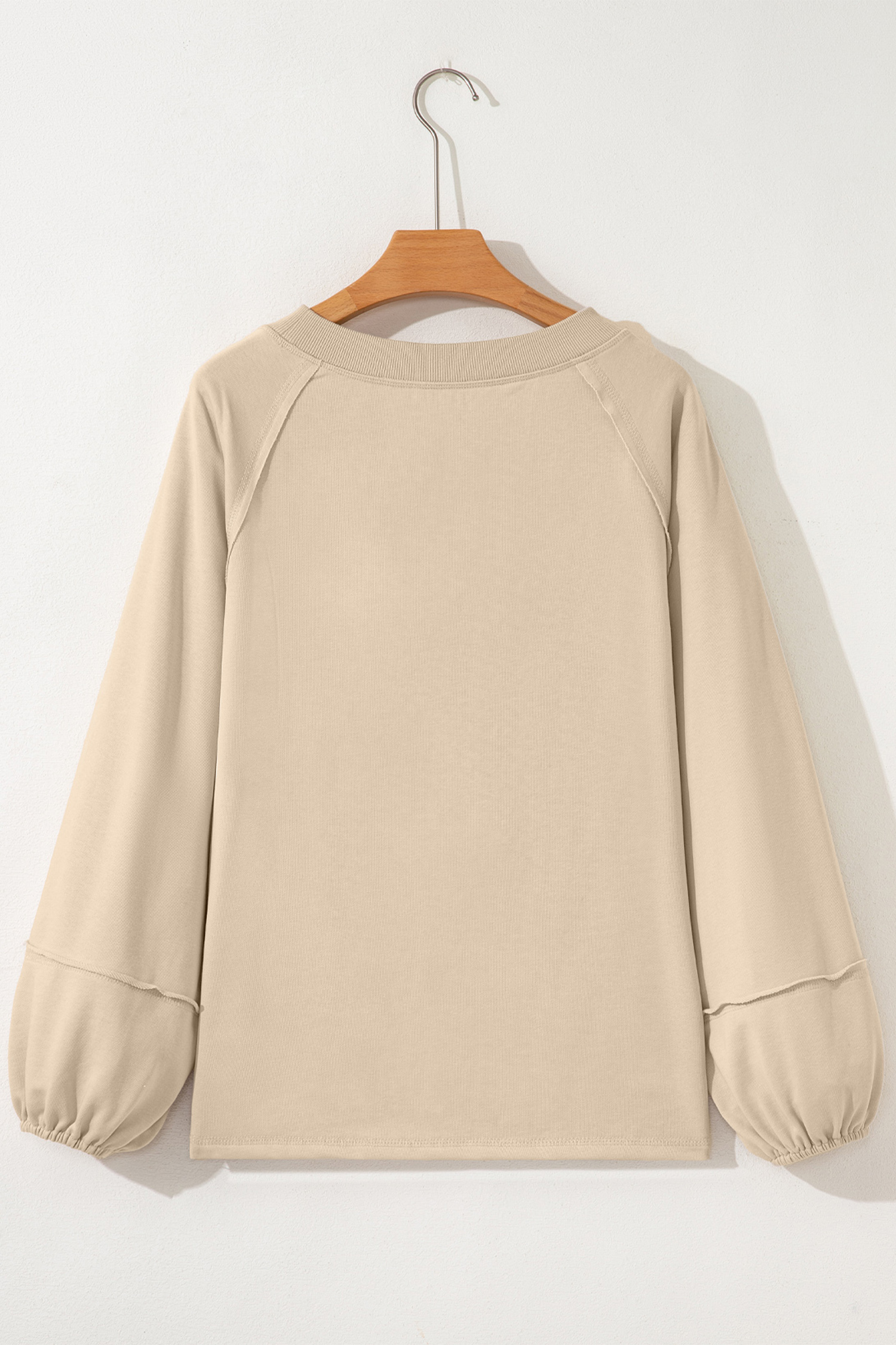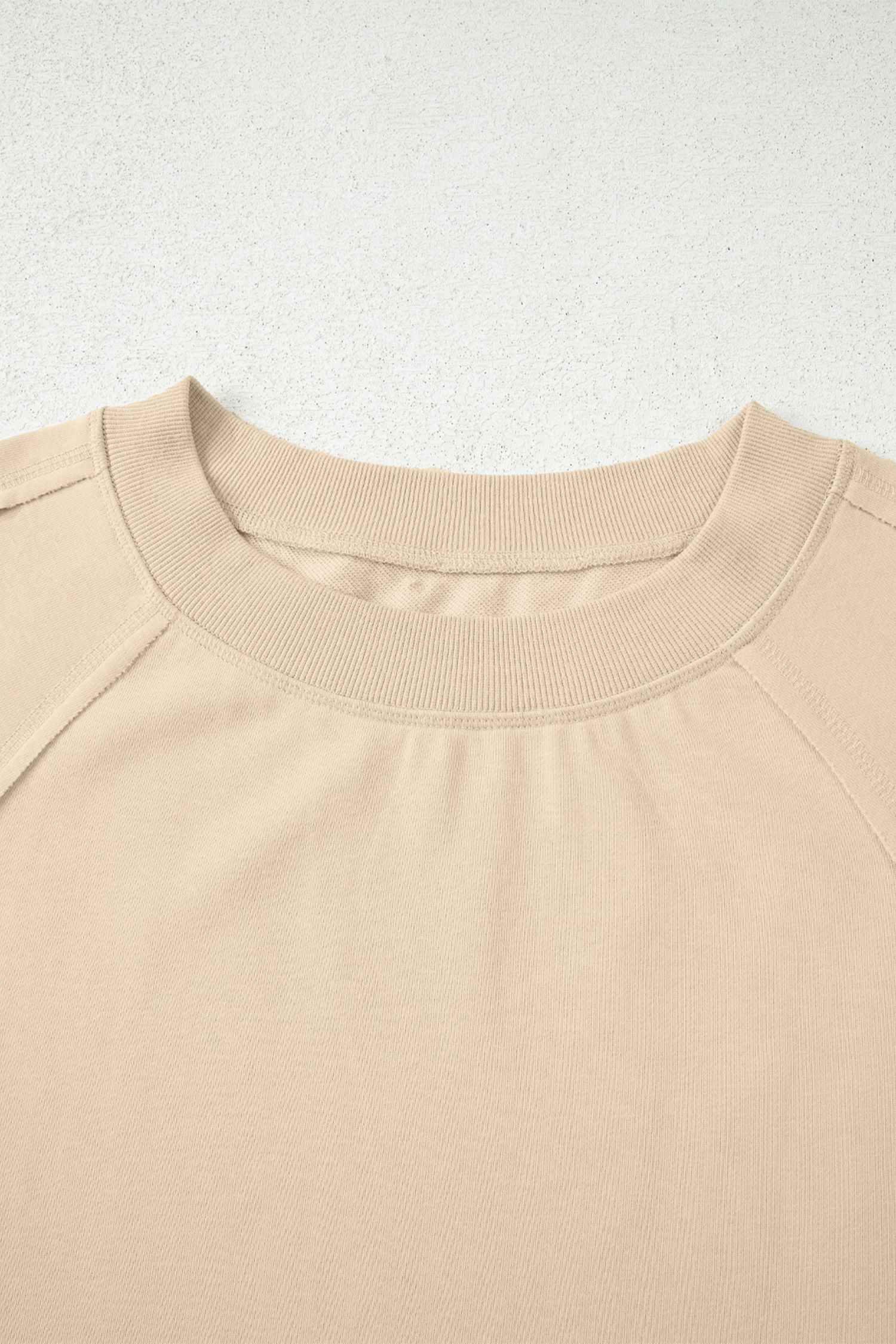 Beige Solid Color Raw Seam Patchwork Baggy Sweatshirt