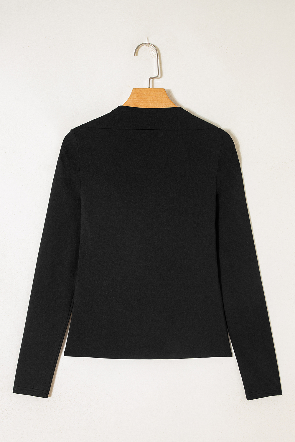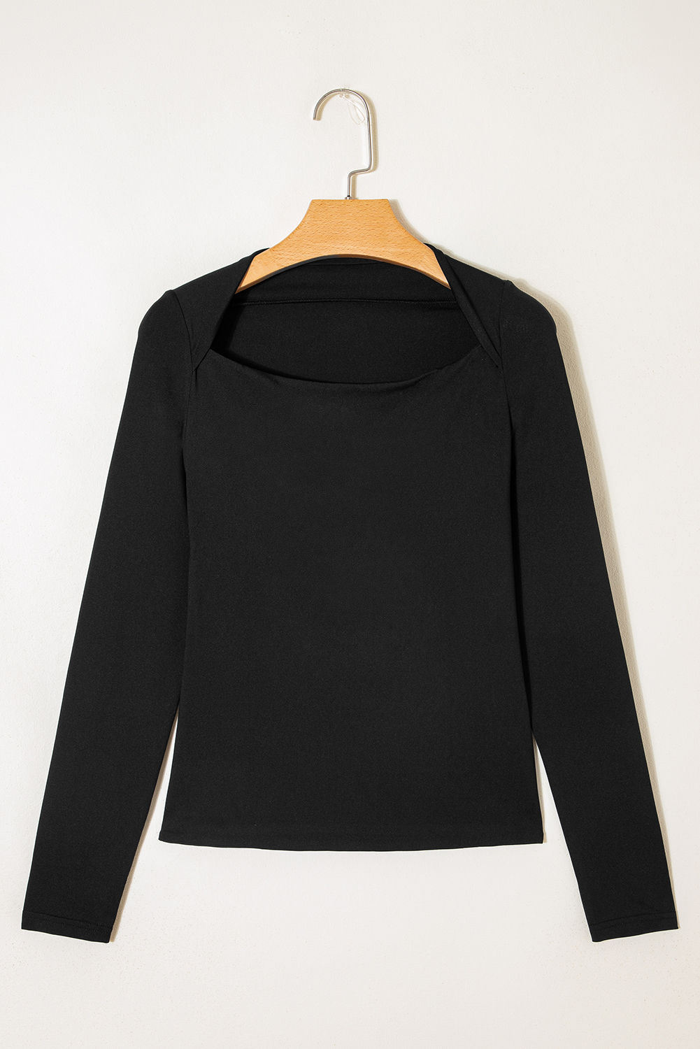 Black Crisscross Boat Neck Long Sleeve Slim Top