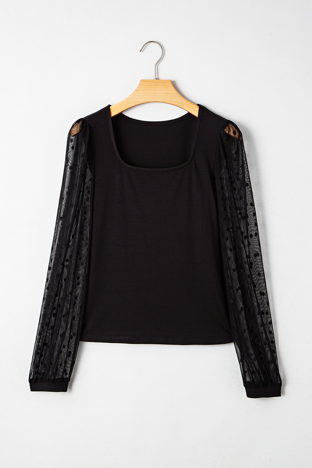 - The polka dot mesh puff sleeve adds a romantic and flirty vibe.