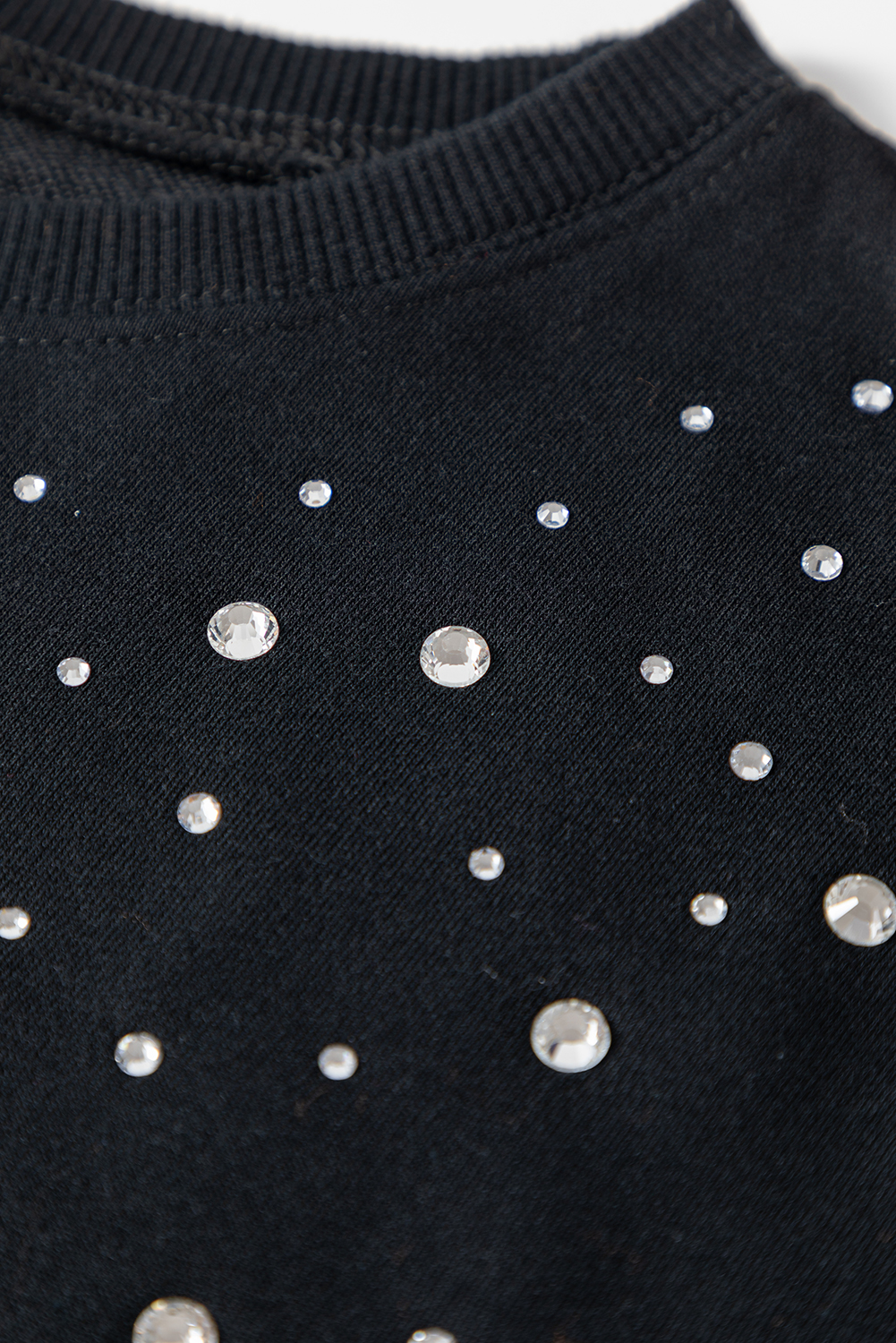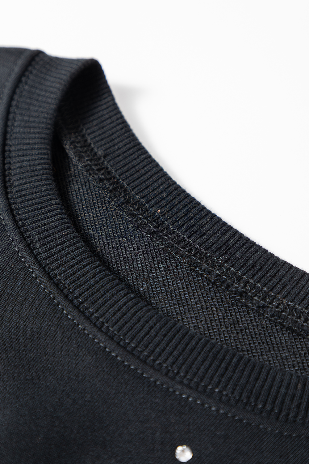 Black Rhinestone Embellished Drop Shoulder Ribbed Cuffs Wholesale Sweatshirt