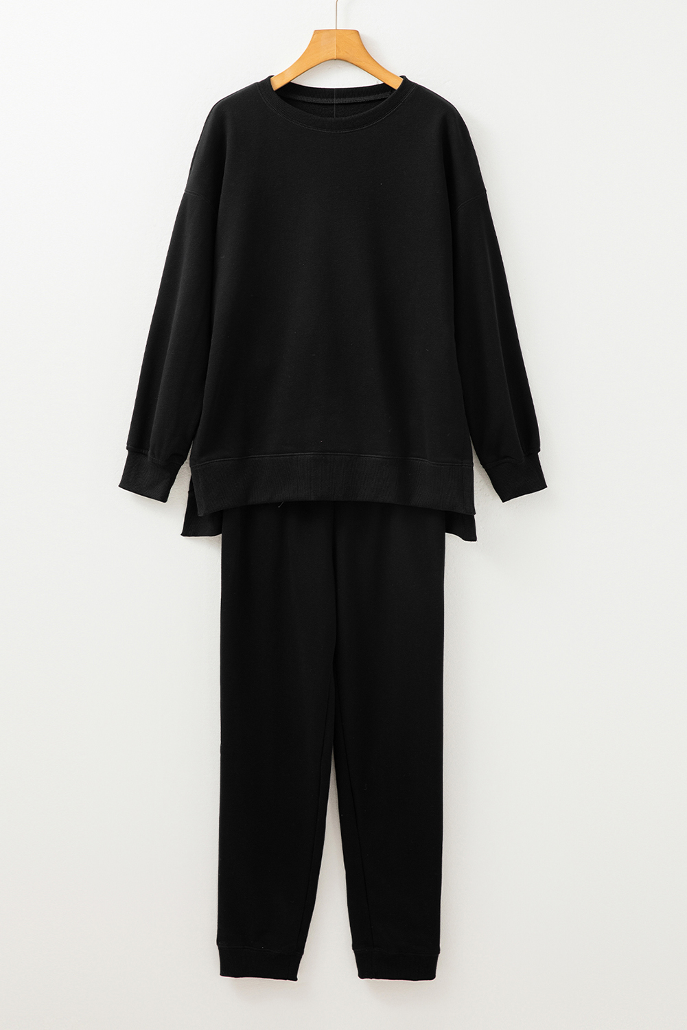 Crew neck sweatshirt with a loose fit style, drop shoulder and side slit finished.