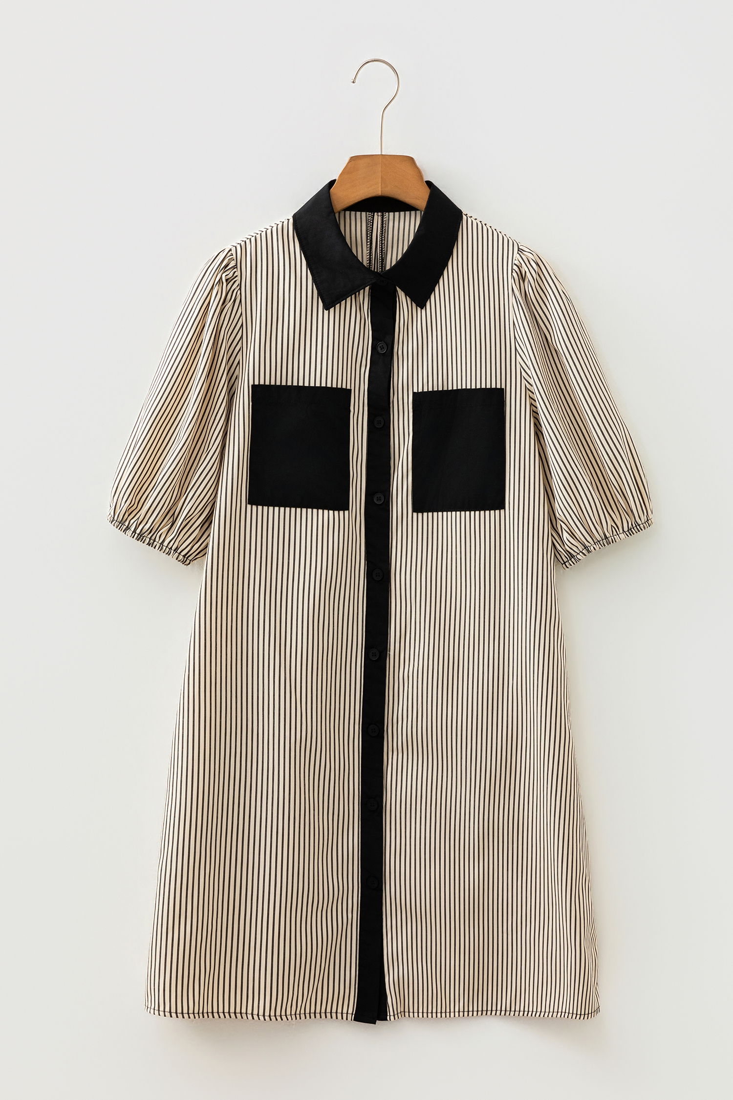 Shirt style casual dress for women with puffy half sleeves.