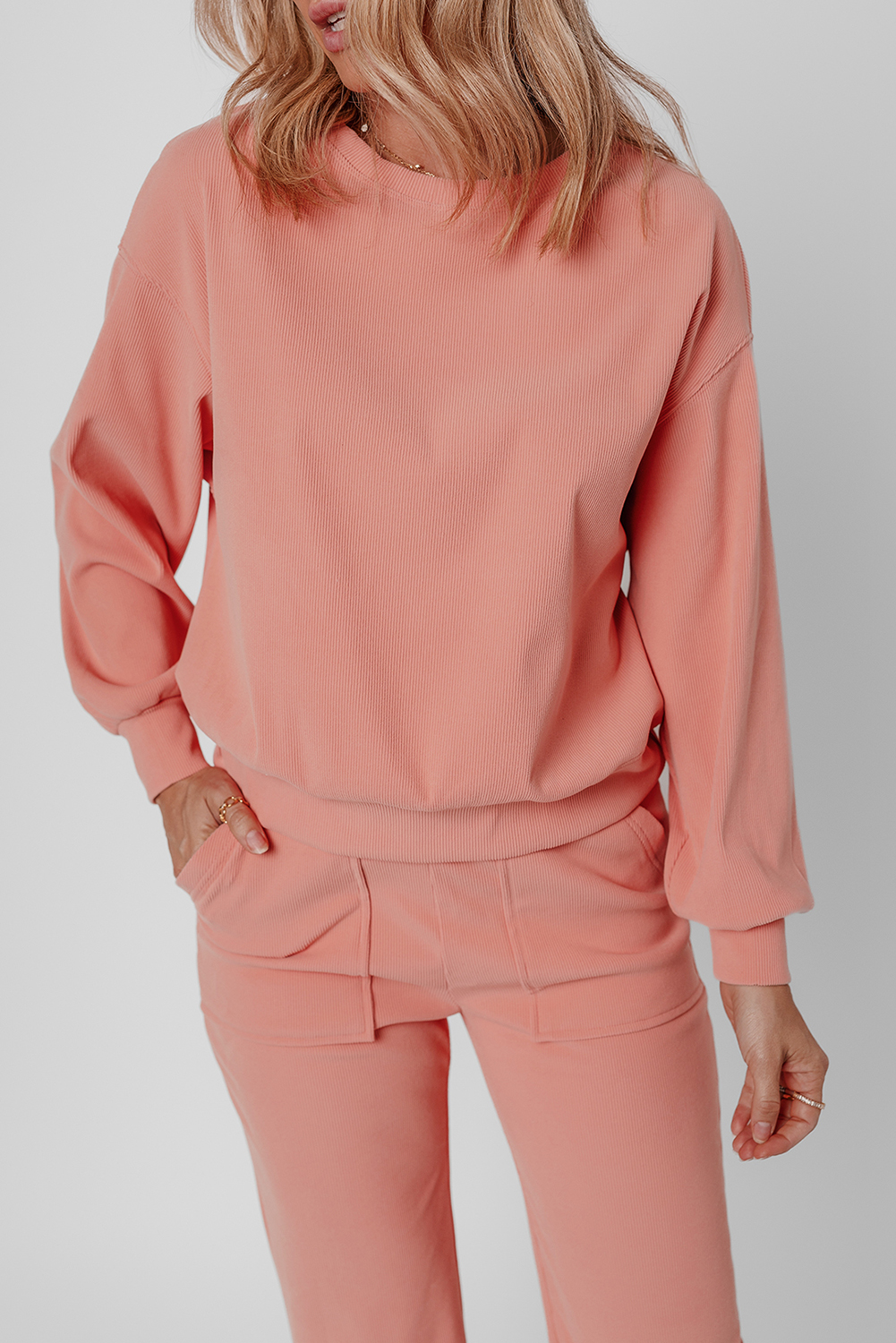 - This casual loungewear creates an effortless coordination and style.