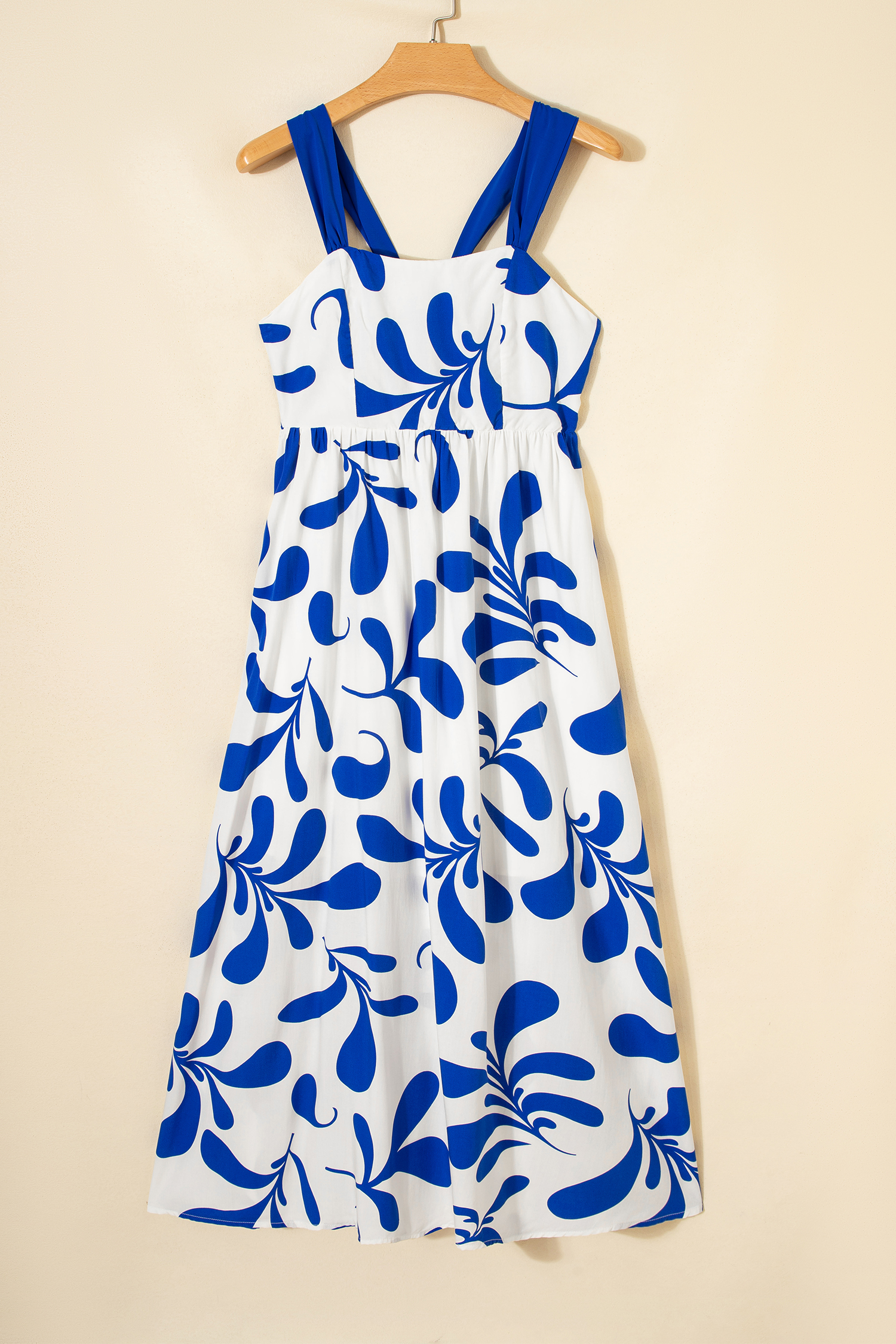 The empire waist design and maxi length create a flattering fit silhouette.