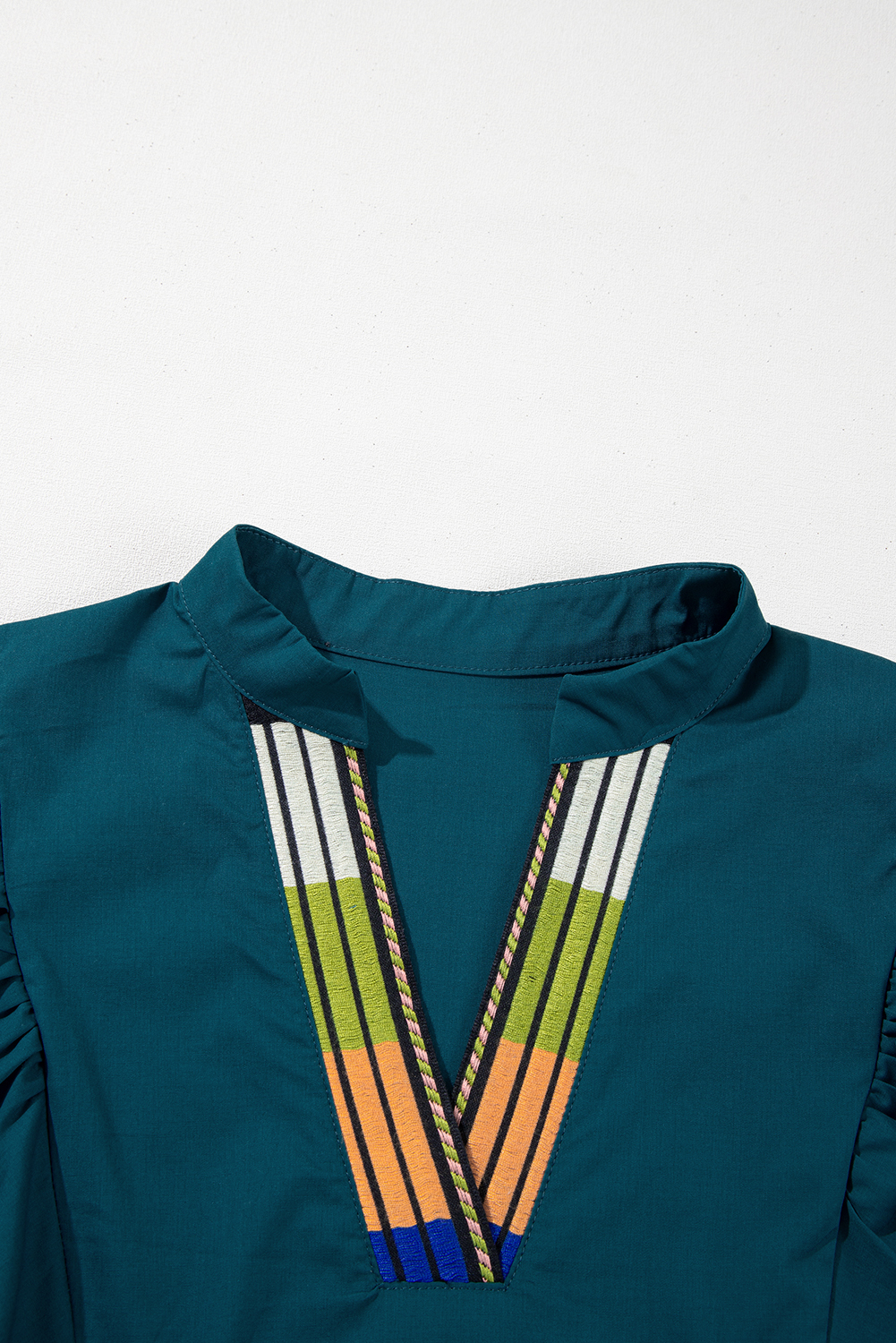 Be the first to review “Blue Sapphire Colorblock Split V Neck Puff Sleeve Mini Dress”