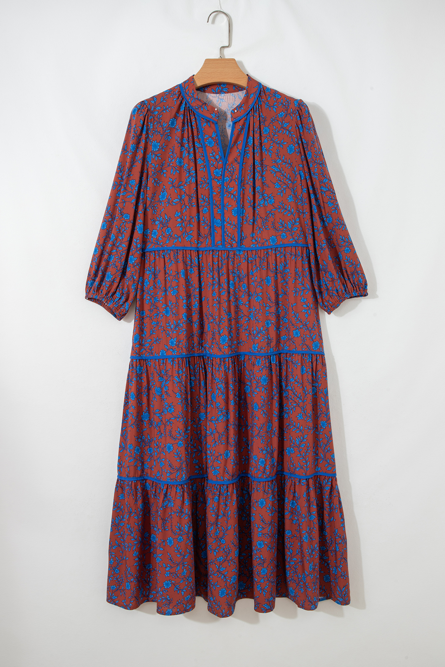 Be the first to review “Brown 3/4 Puff Sleeve Tiered Loose Floral Dress”