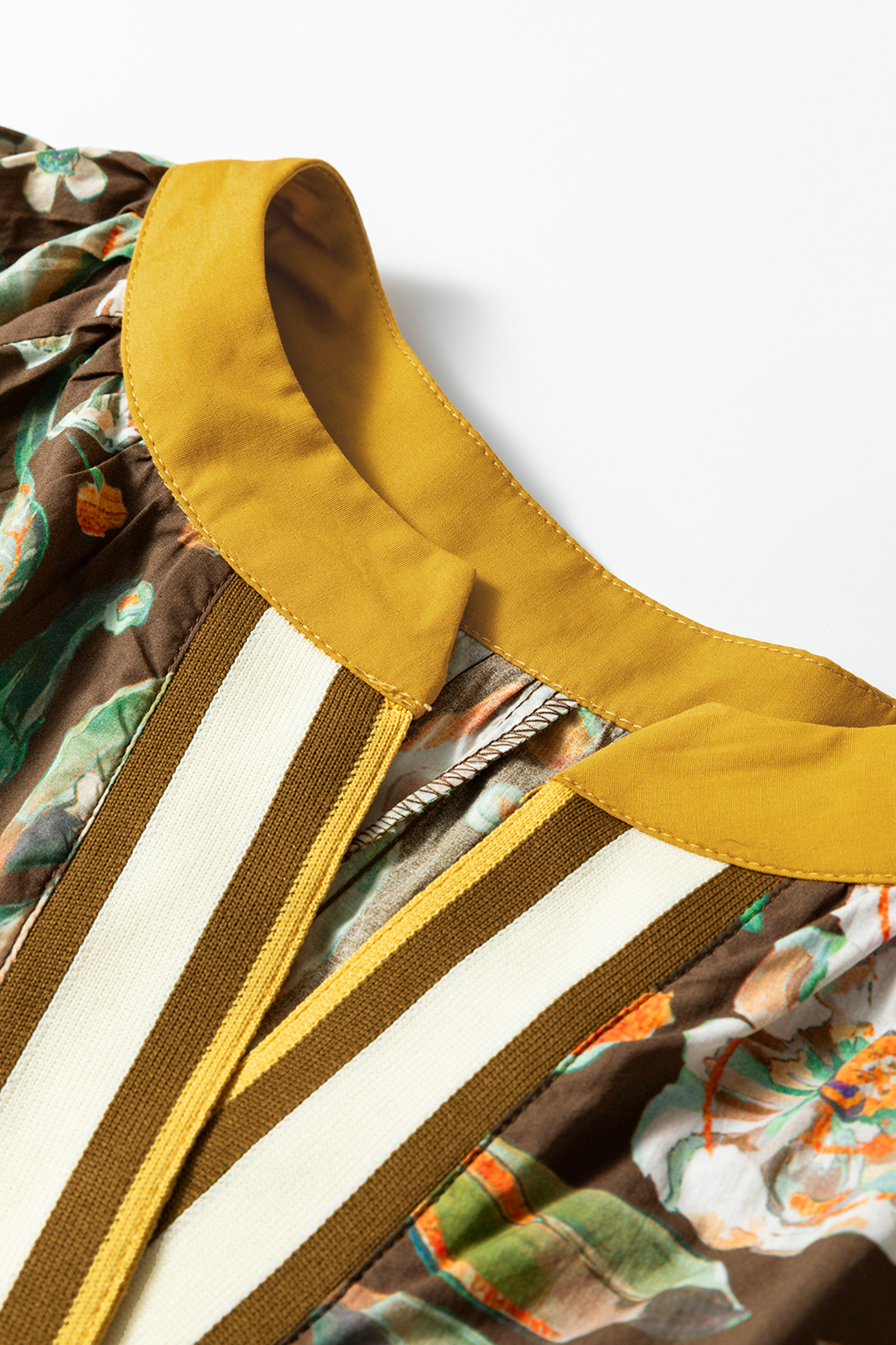 V-neckline with striped contrast trim for a unique, elevated touch.