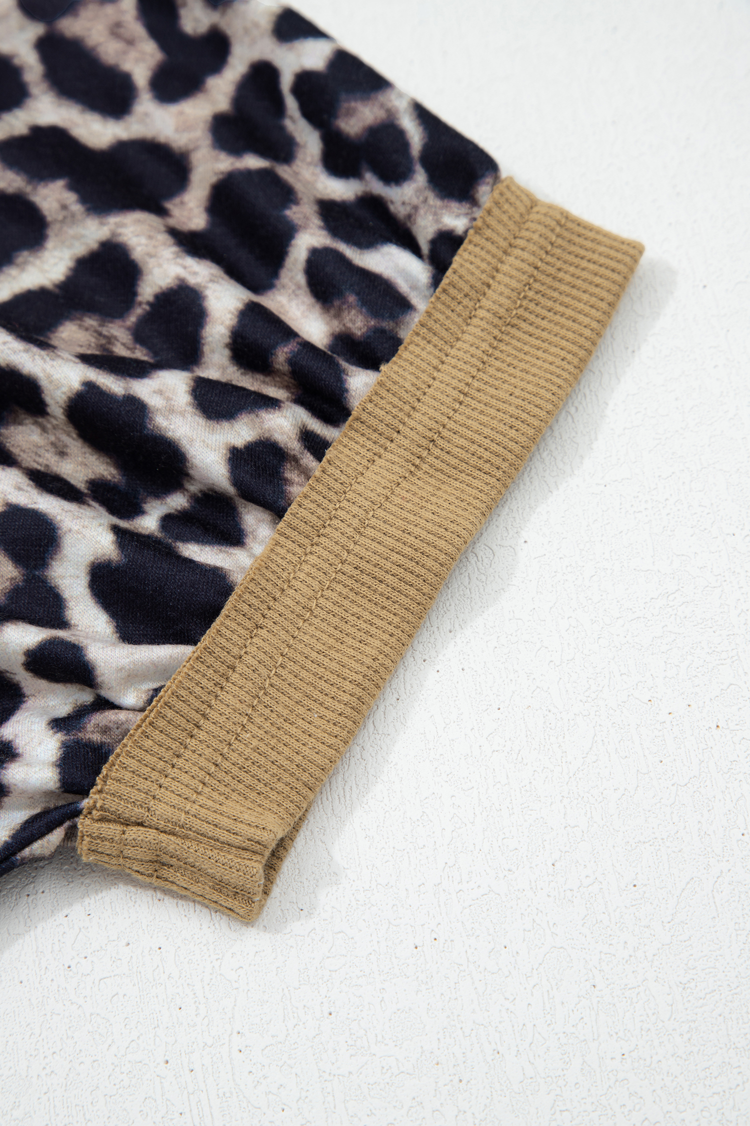 Be the first to review “Brown Leopard Print Color Block Patchwork 3/4 Sleeve Loose Top”