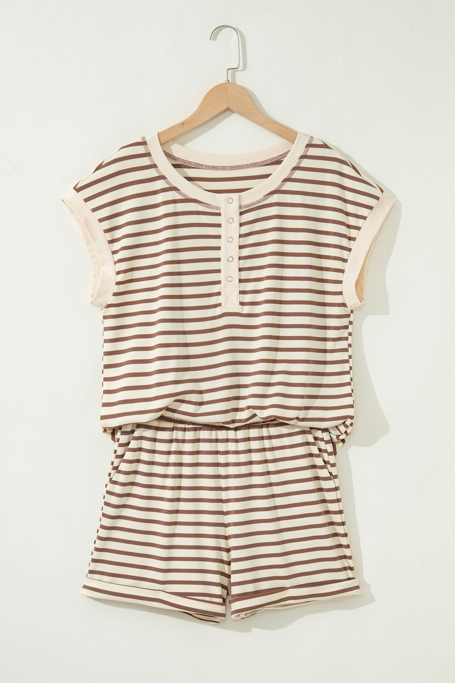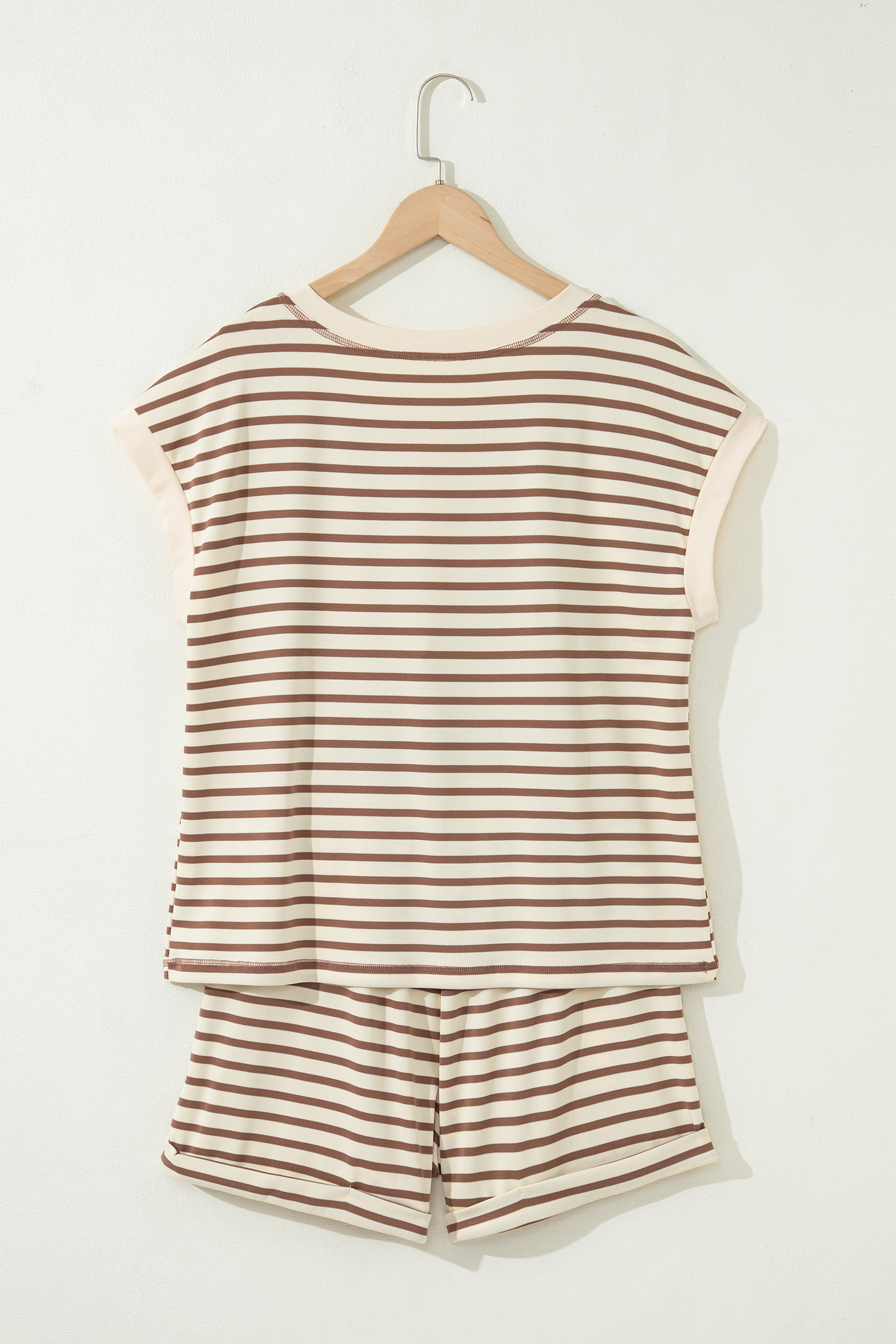 Matching shorts complete an easy, coordinated two piece outfit.