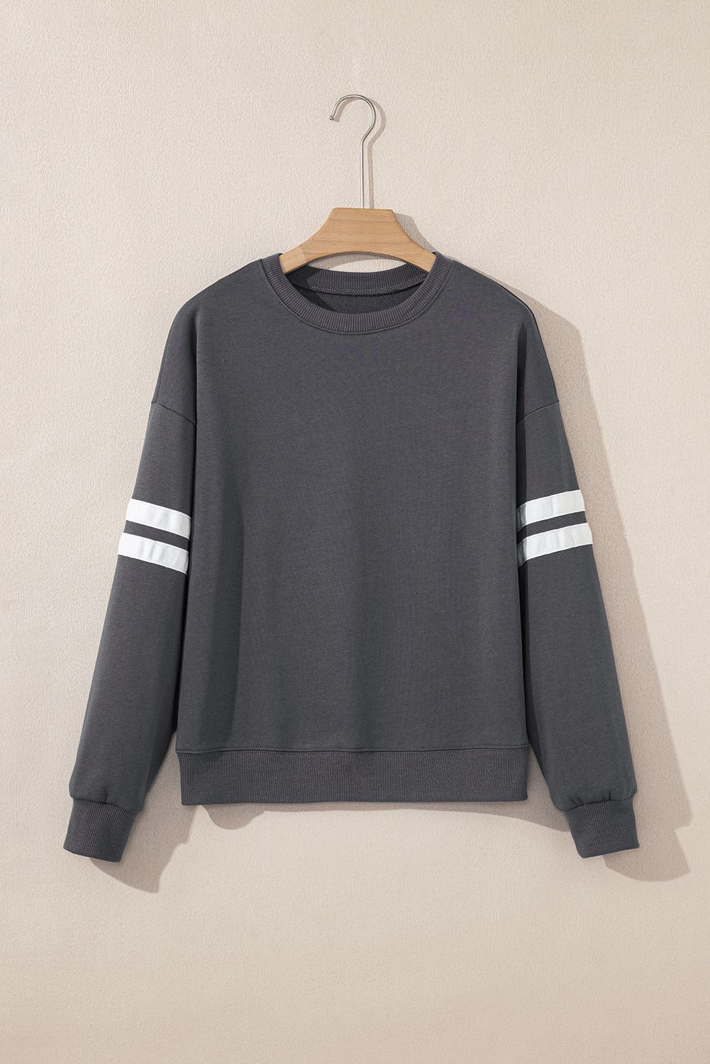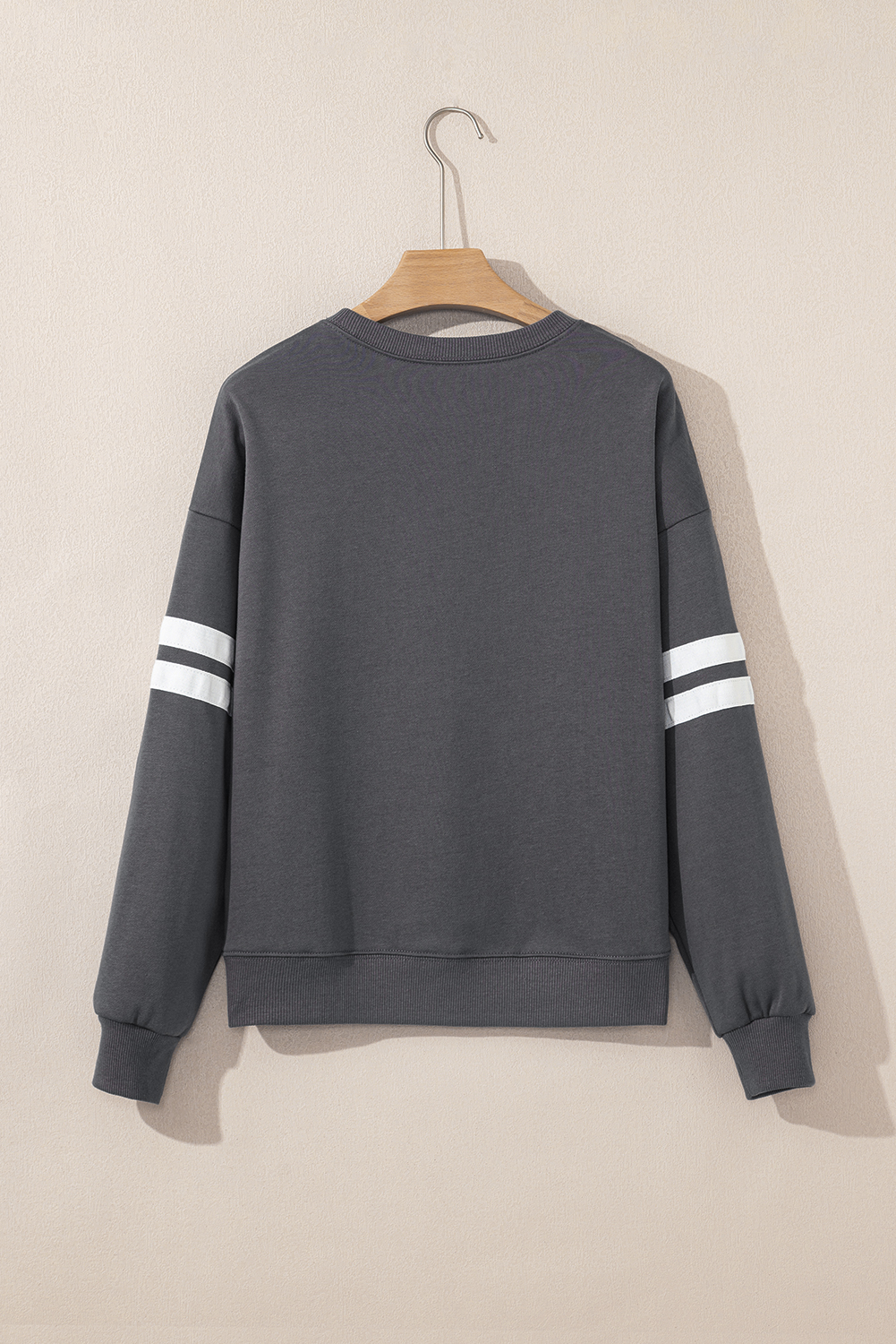 Dark Grey Varsity Striped Detail Drop Shoulder Oversized Sweatshirt