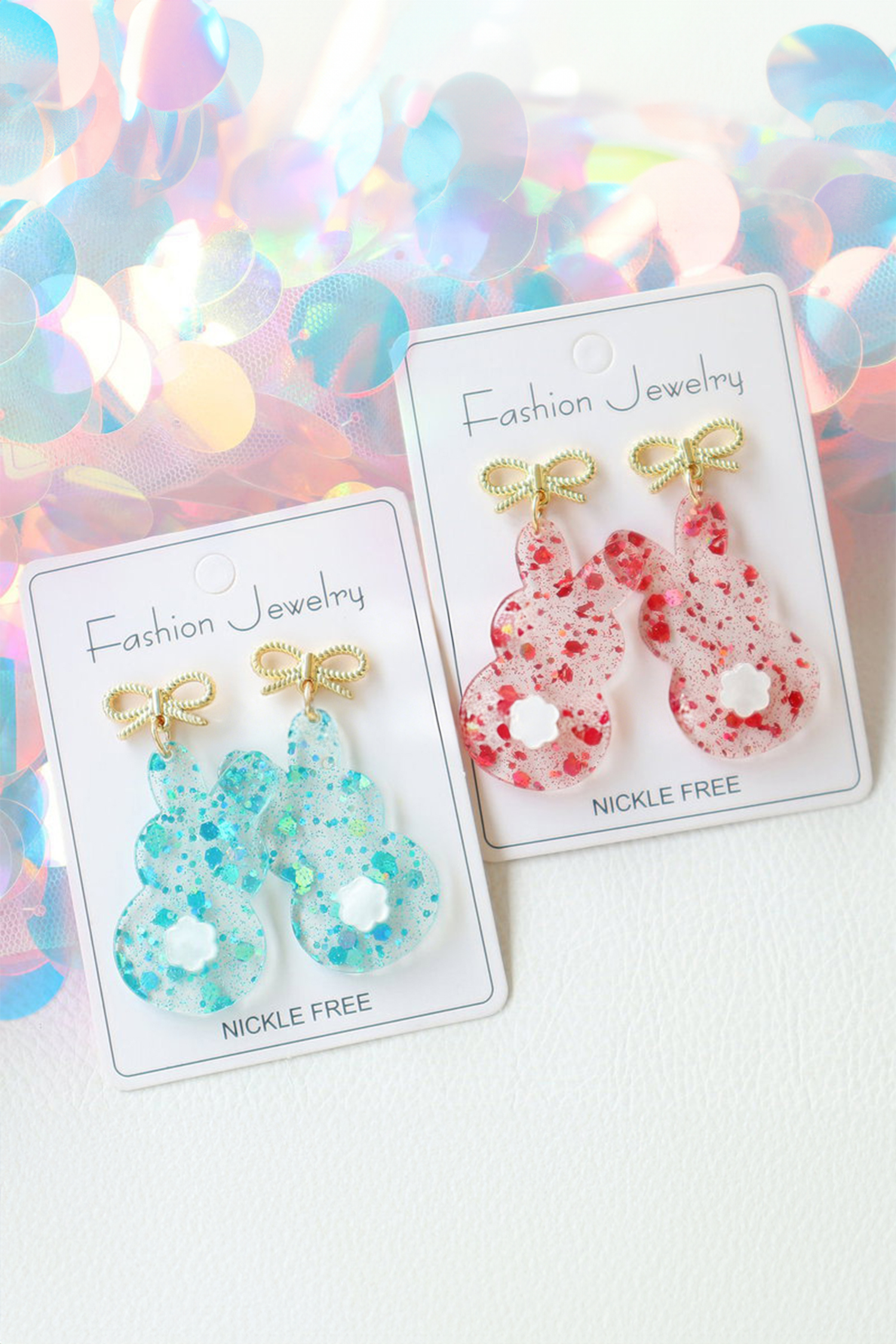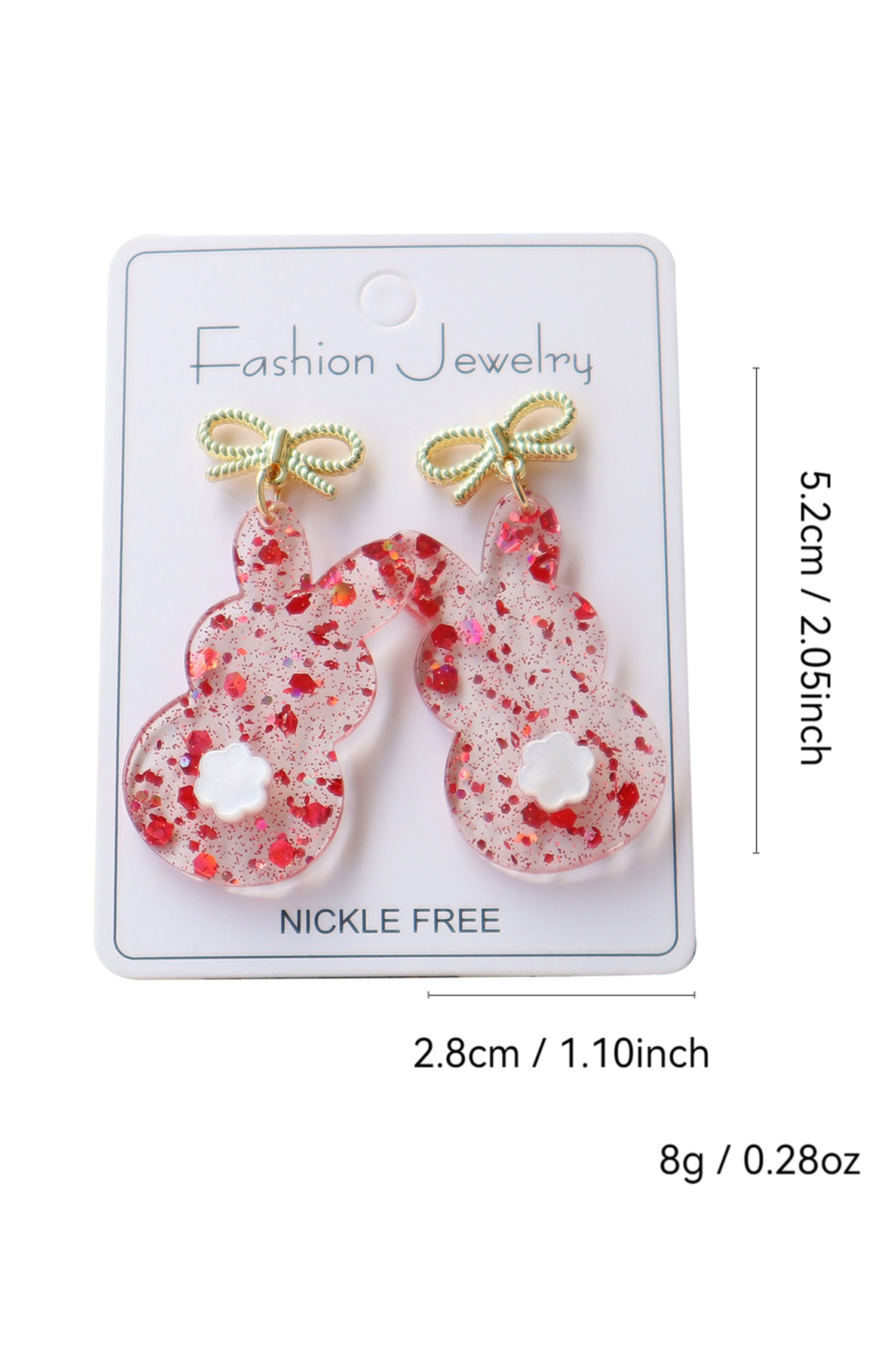 Be the first to review “Fiery Red Clear Easter Bunny Bowknot Studded Earrings”