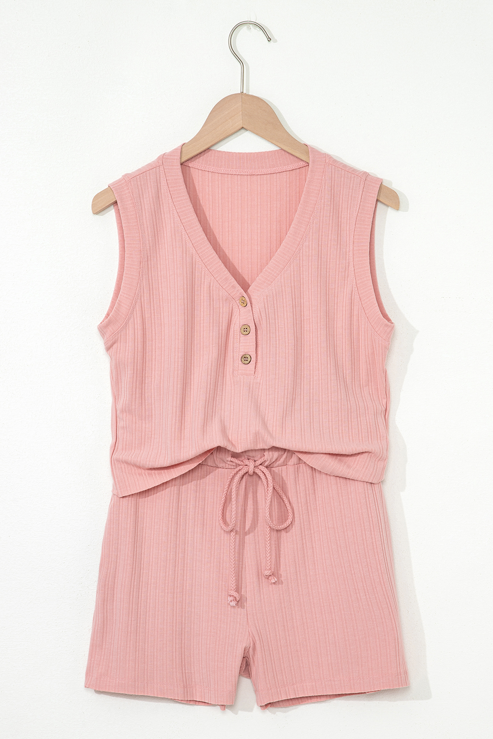 Embrace a touch of elegance with a buttoned V-neck design.