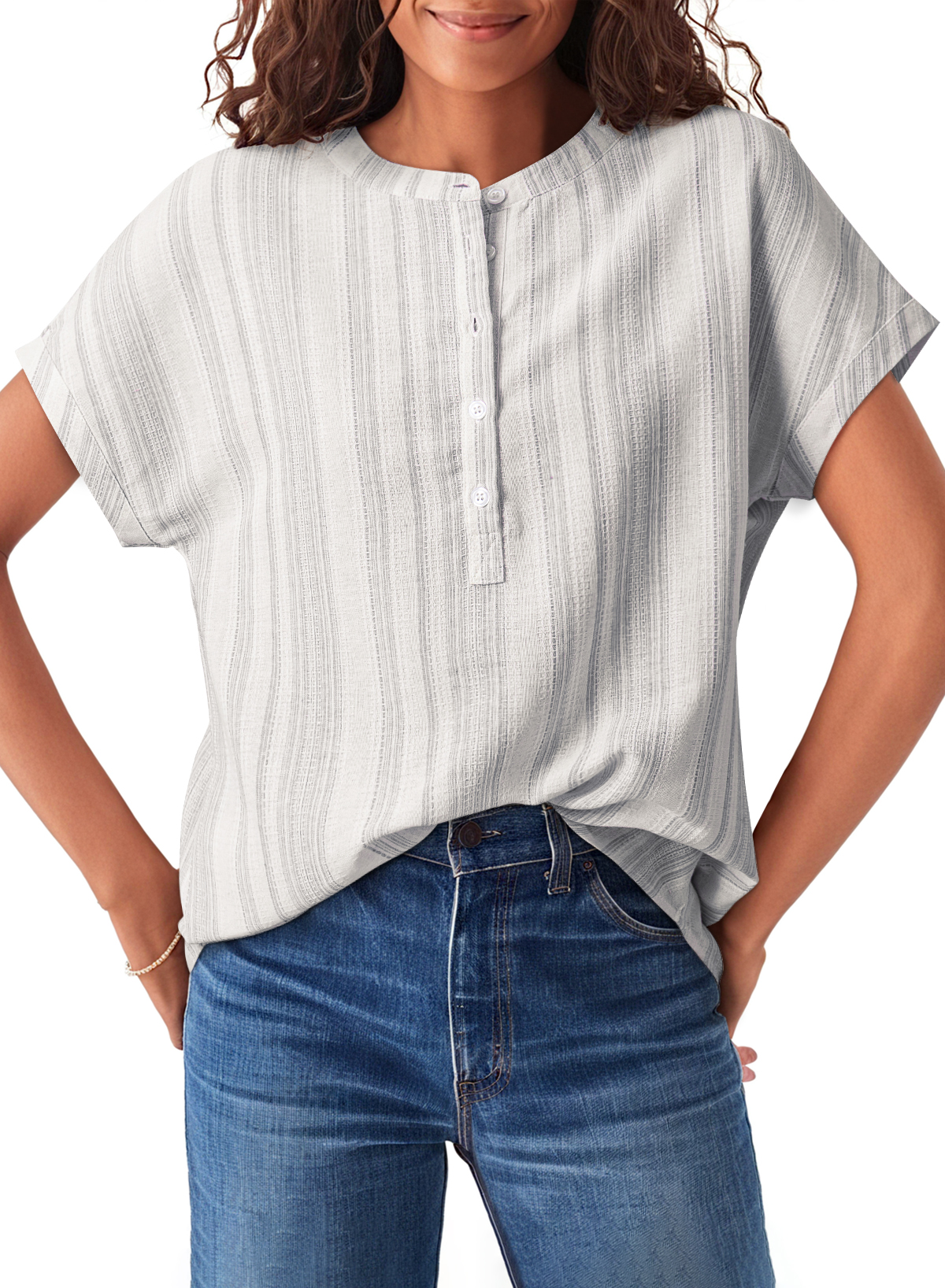 Half button design adds casual charm with easy styling.