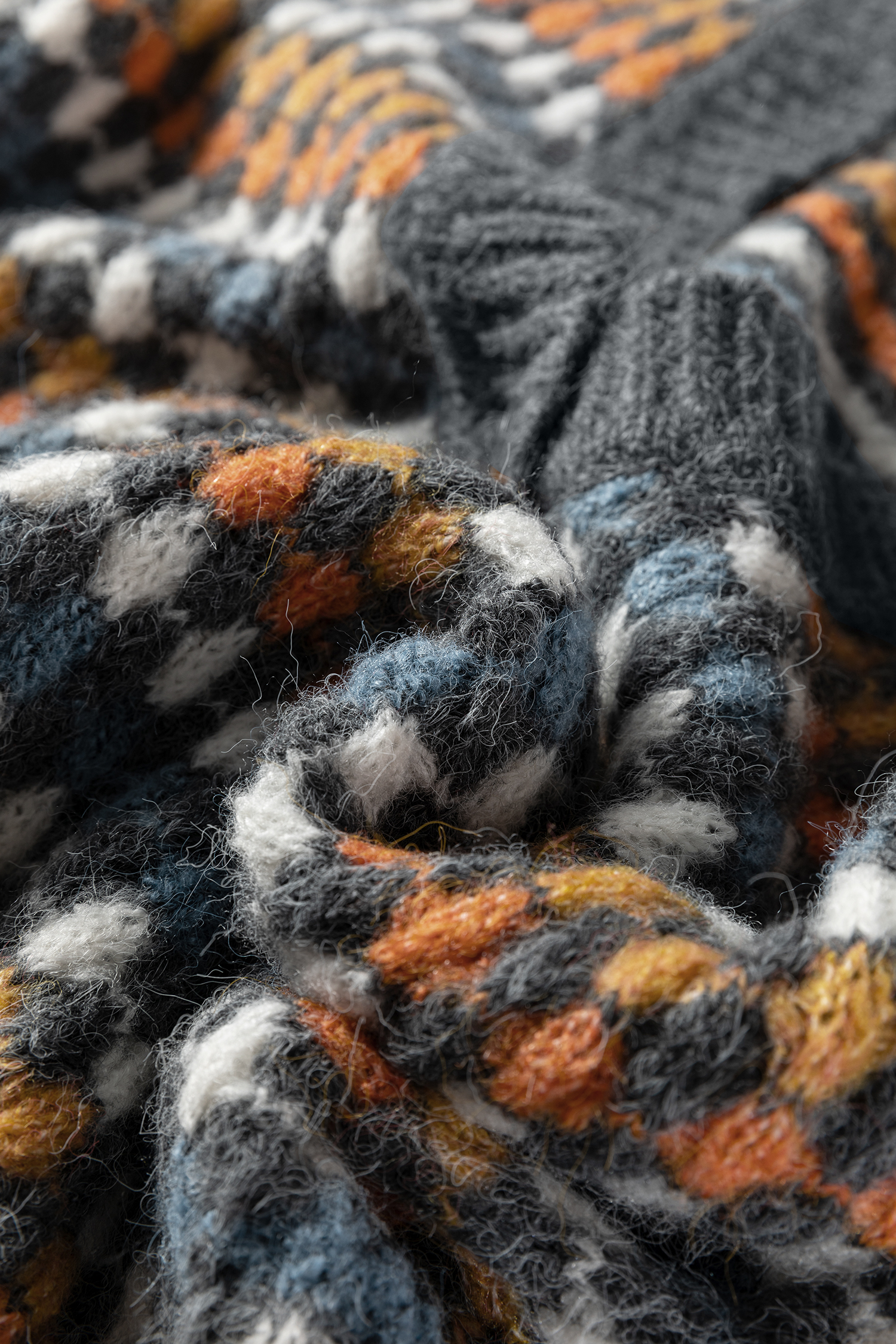 - Dotty knit pattern offers both texture and visual interest.