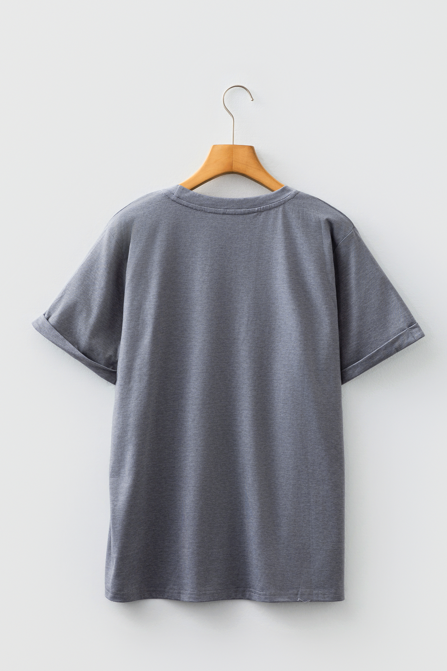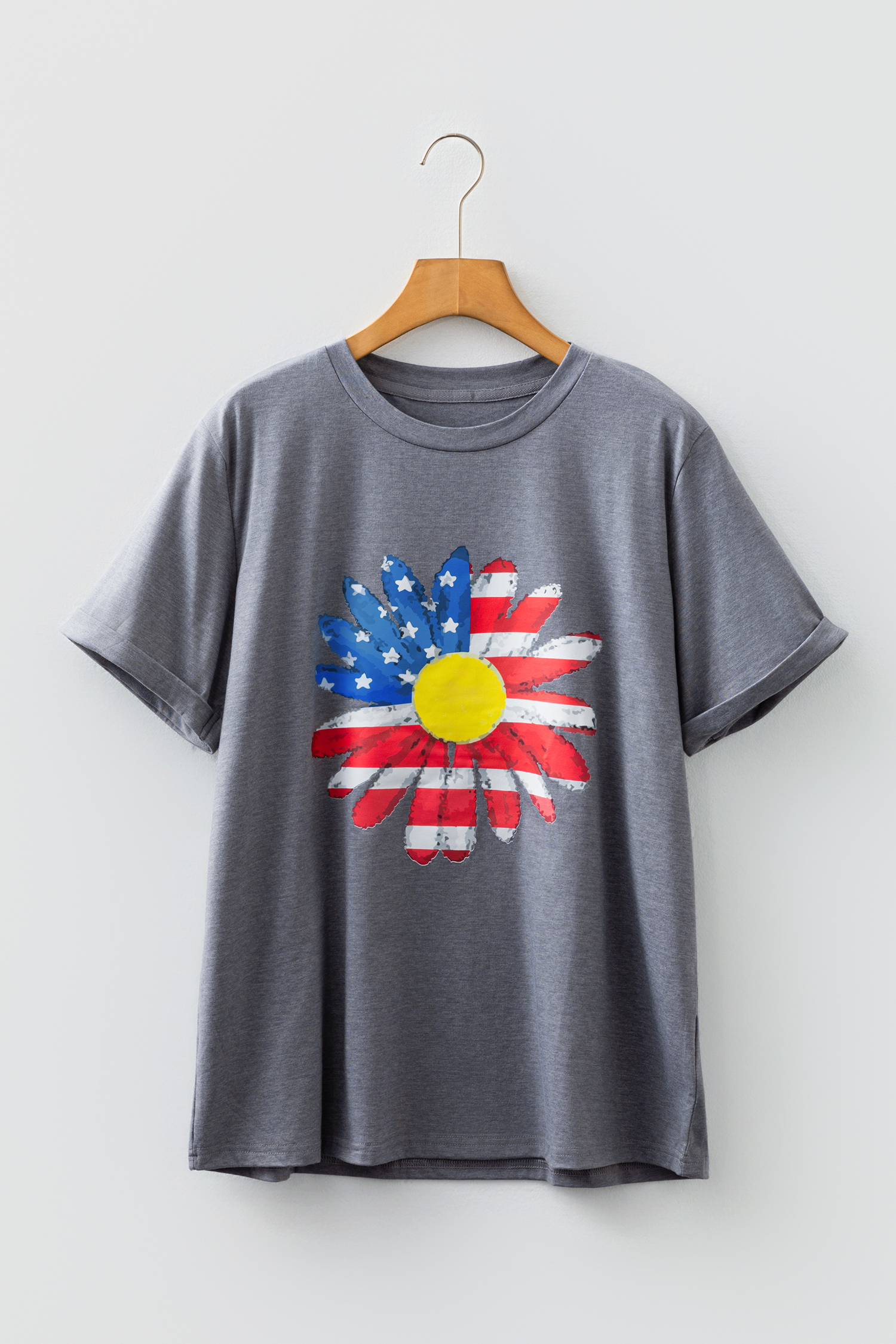 Gray Flag Pattern Sunflower Graphic Crew Neck Tee