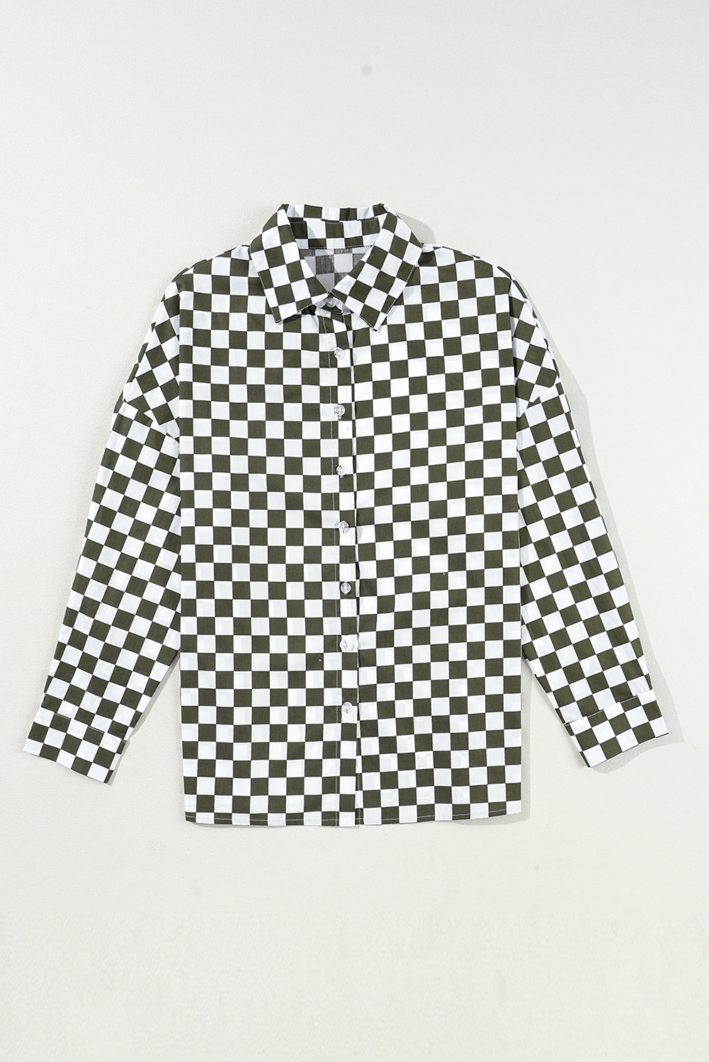Be the first to review “Green Checkerboard Printed Drop Shoulder Loose Casual Shirt”