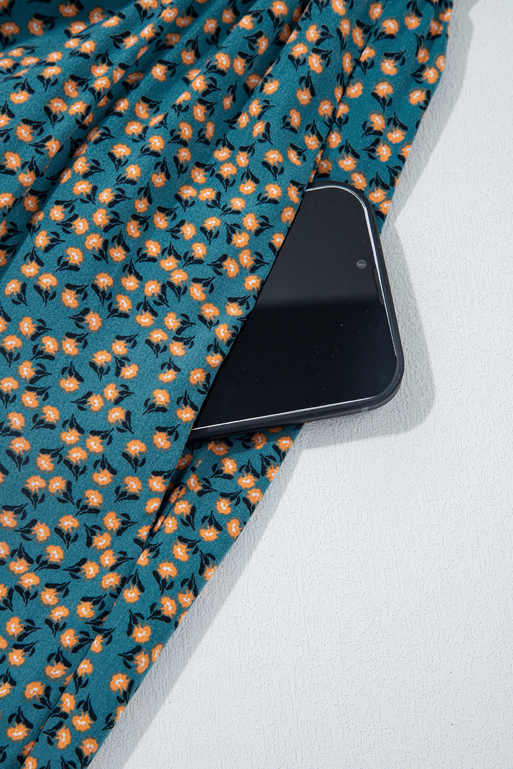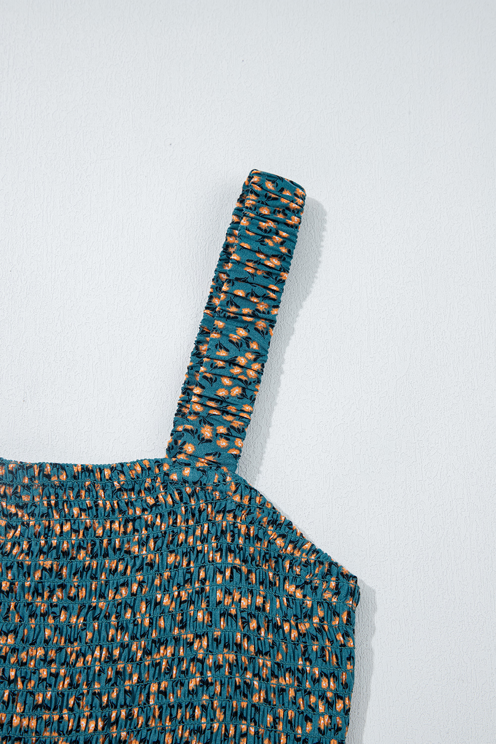 Green Floral Print Smocked High Waist Square Neck Jumpsuit