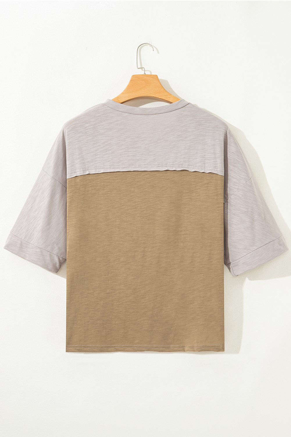 The drop shoulder and bracelet sleeve add a laid-back flair.