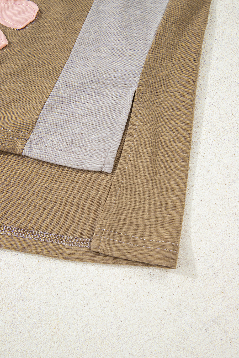 Green Flower Patched Exposed Seam Bracelet Sleeve Oversized T Shirt