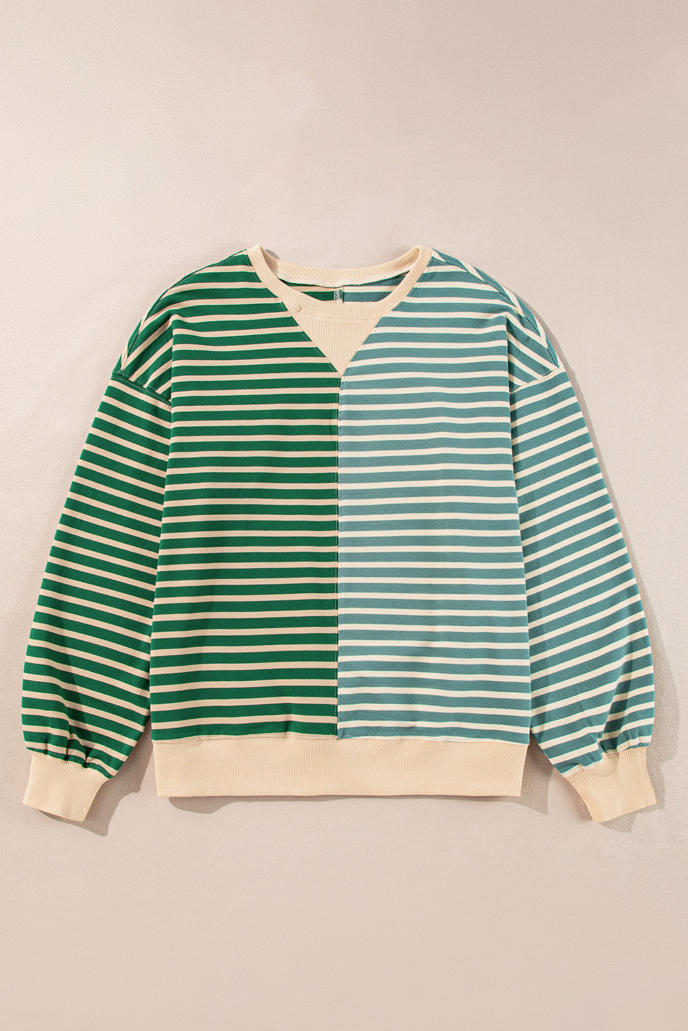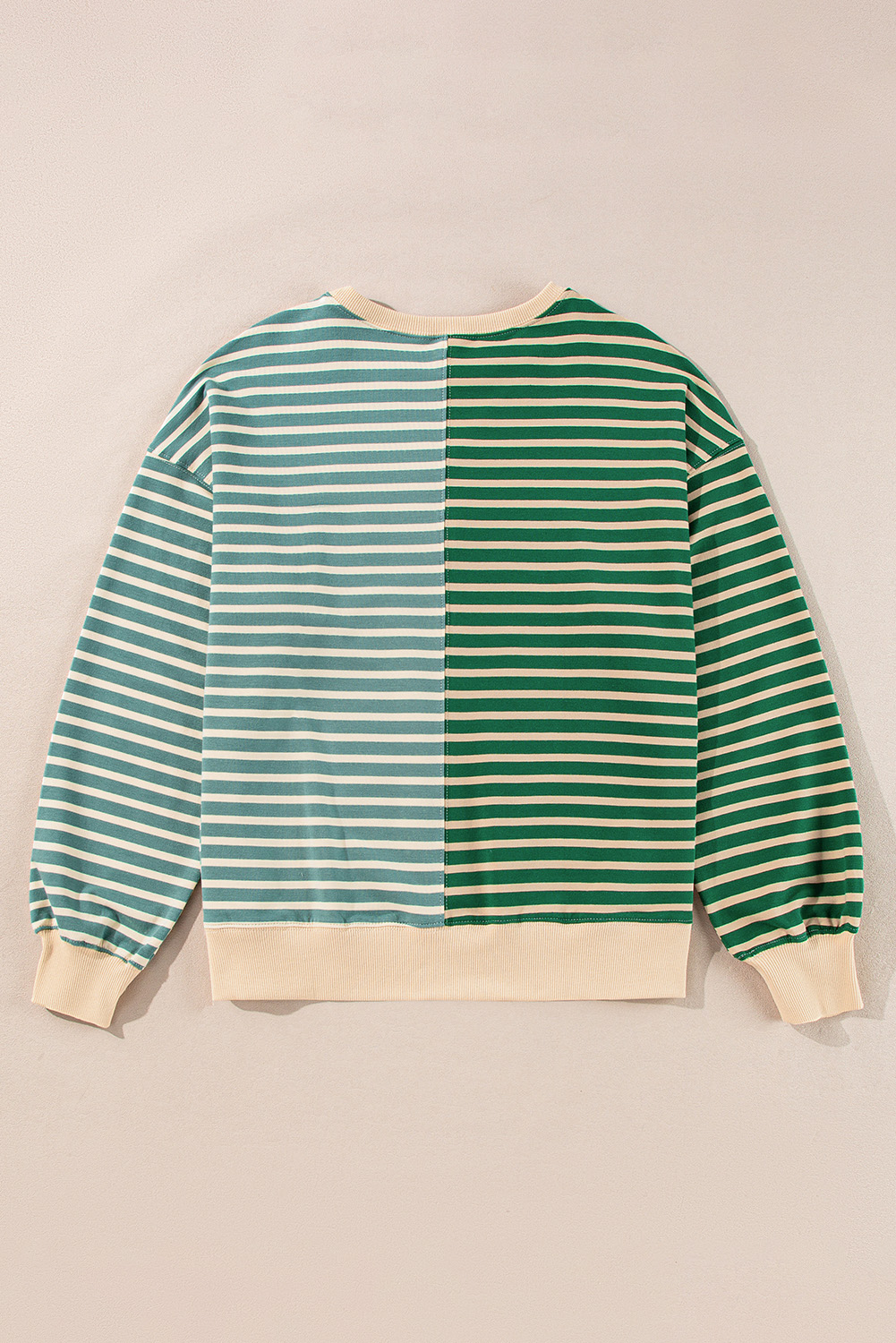 Green Stripe Colorblock Drop Shoulder Oversize Sweatshirt