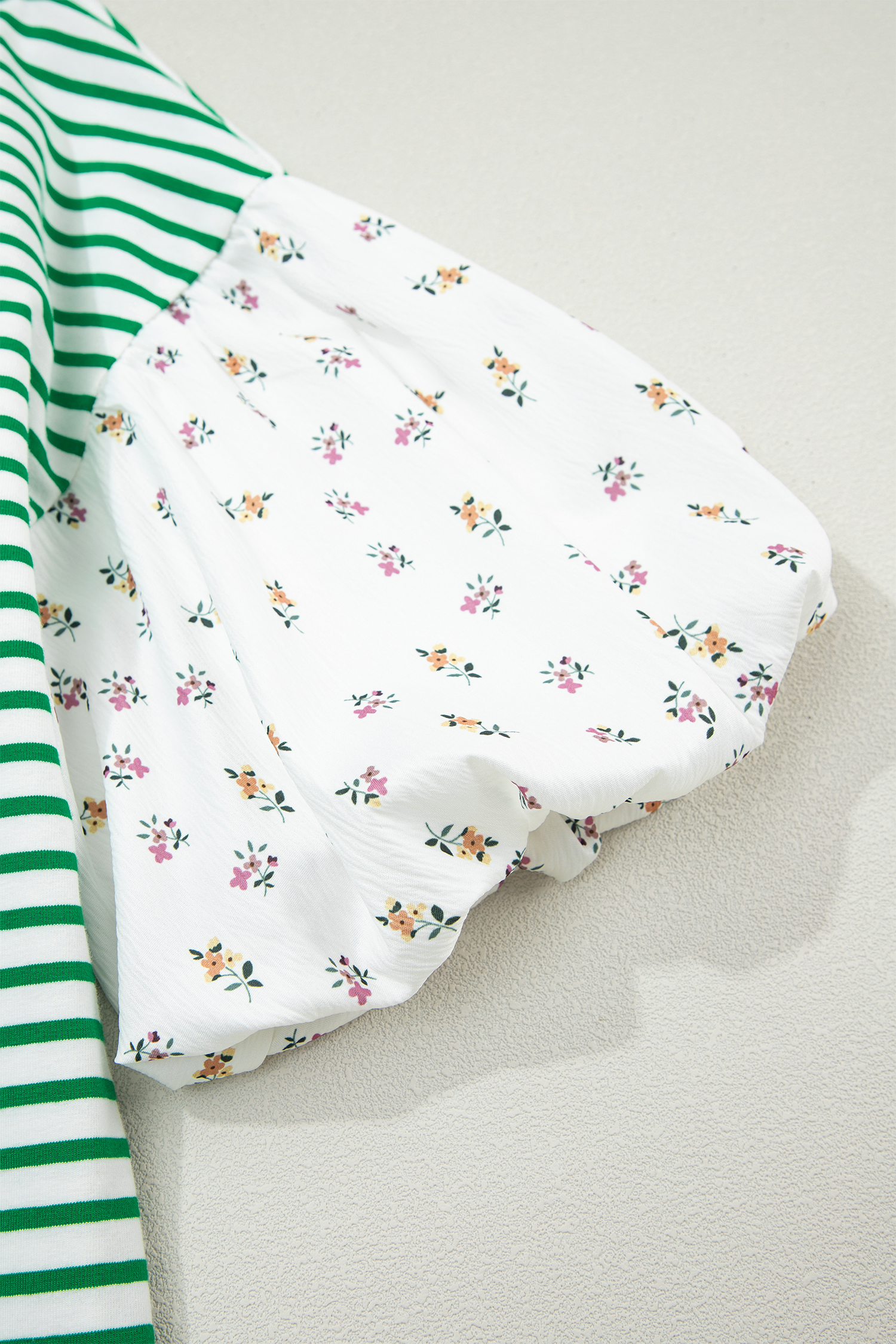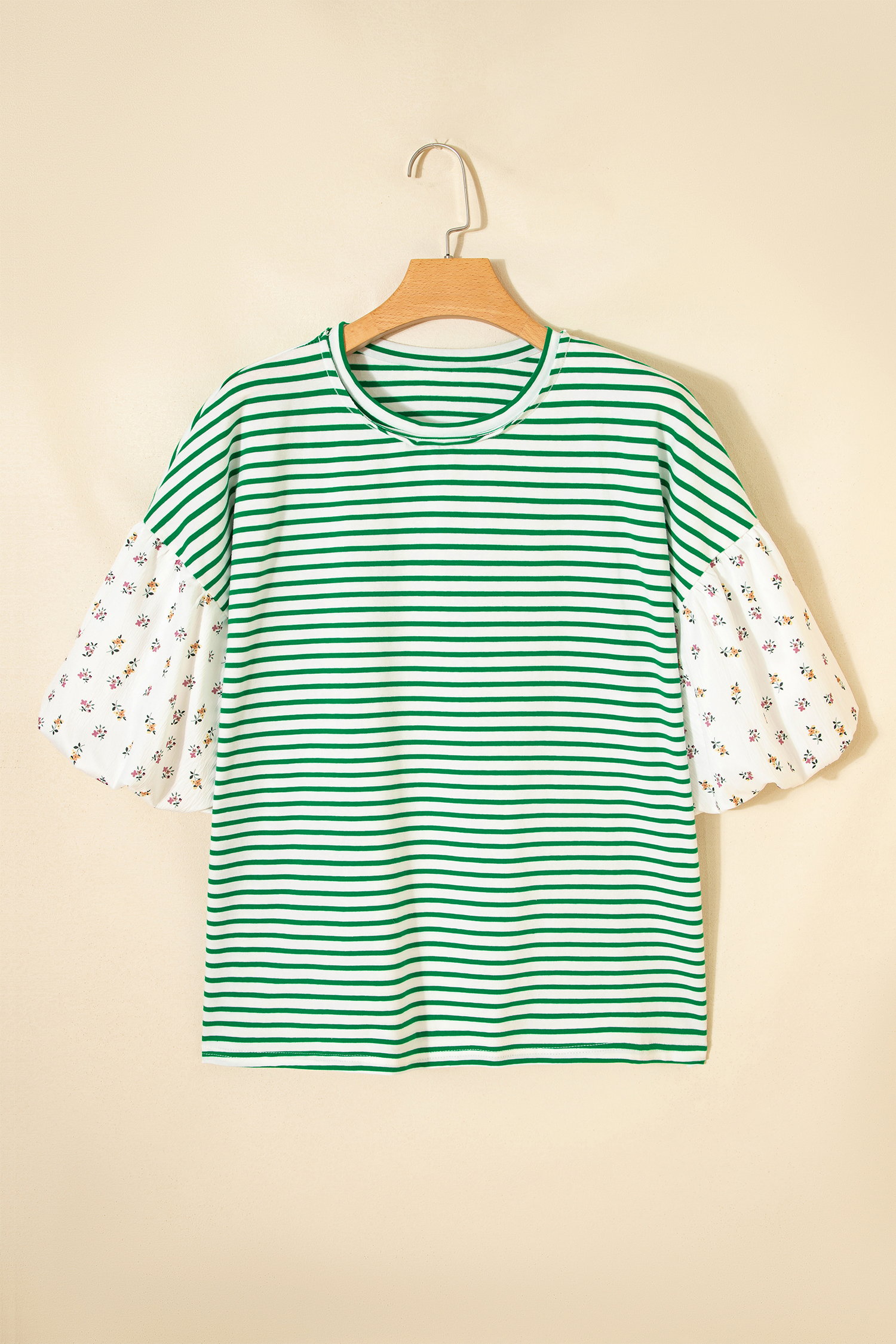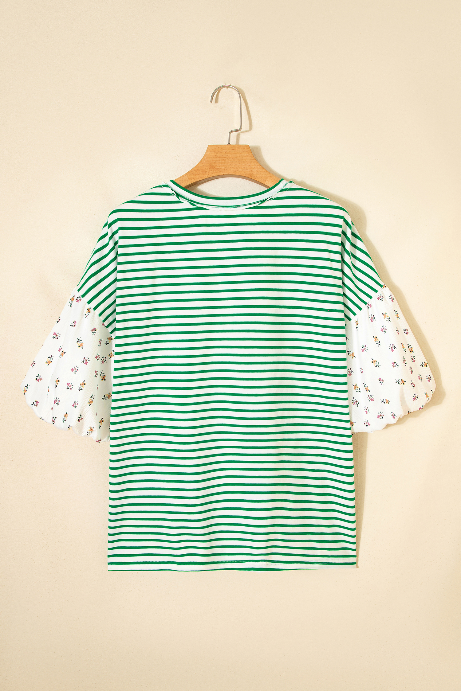 Be the first to review “Green Stripe Floral Puff Sleeve Patchwork Round Neck Loose Top”