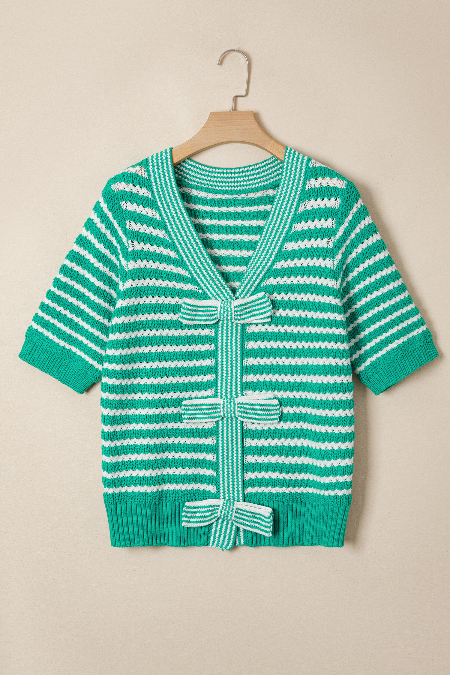 - Soft knit fabric ensures this short sleeve sweater comfortable wear.