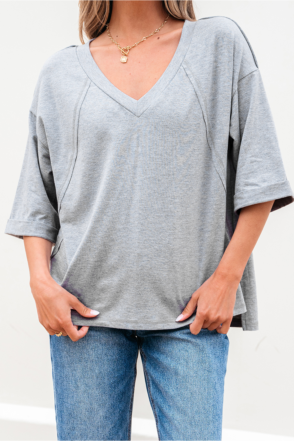 High Raglan Half Sleeve V Neck Oversized T Shirt