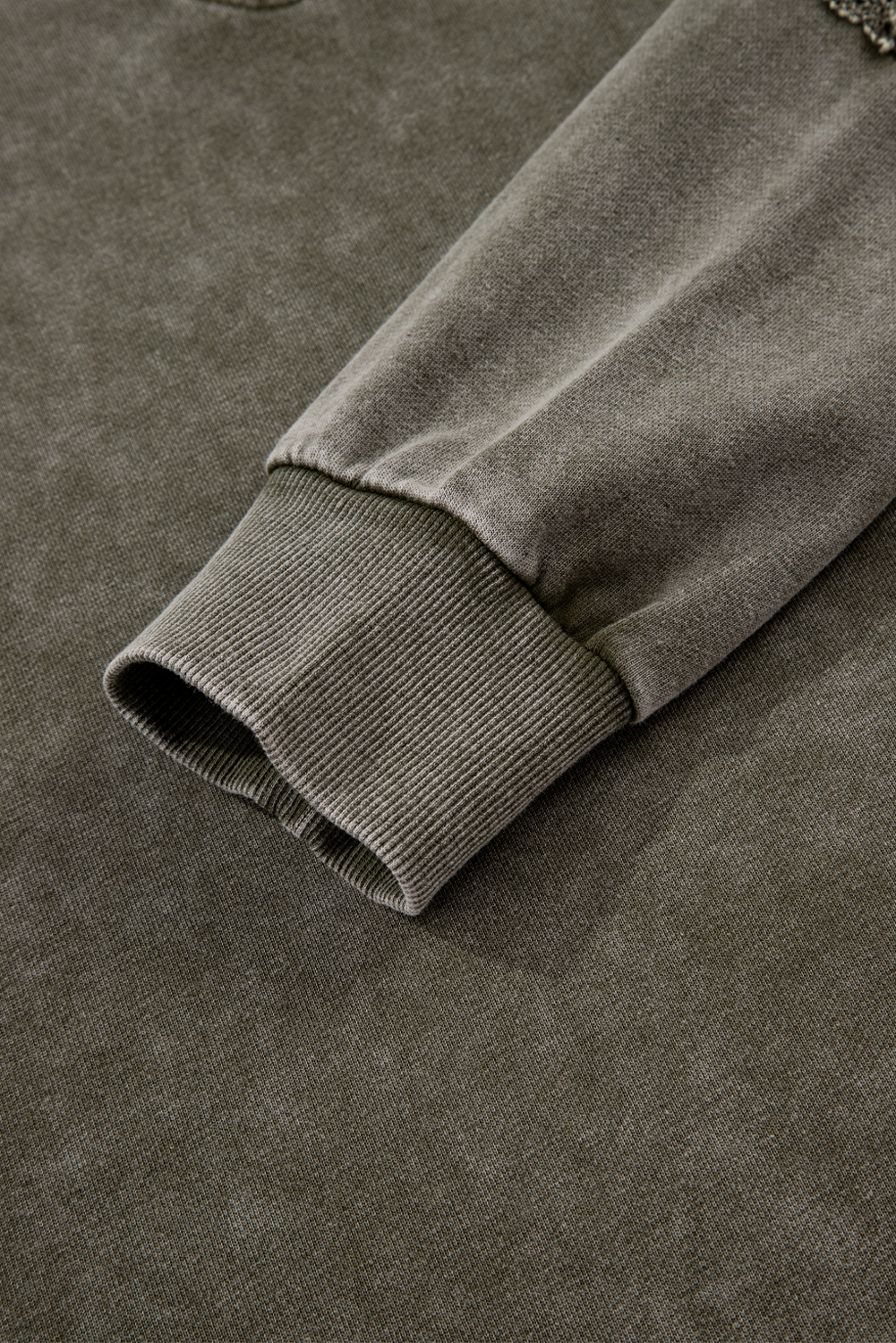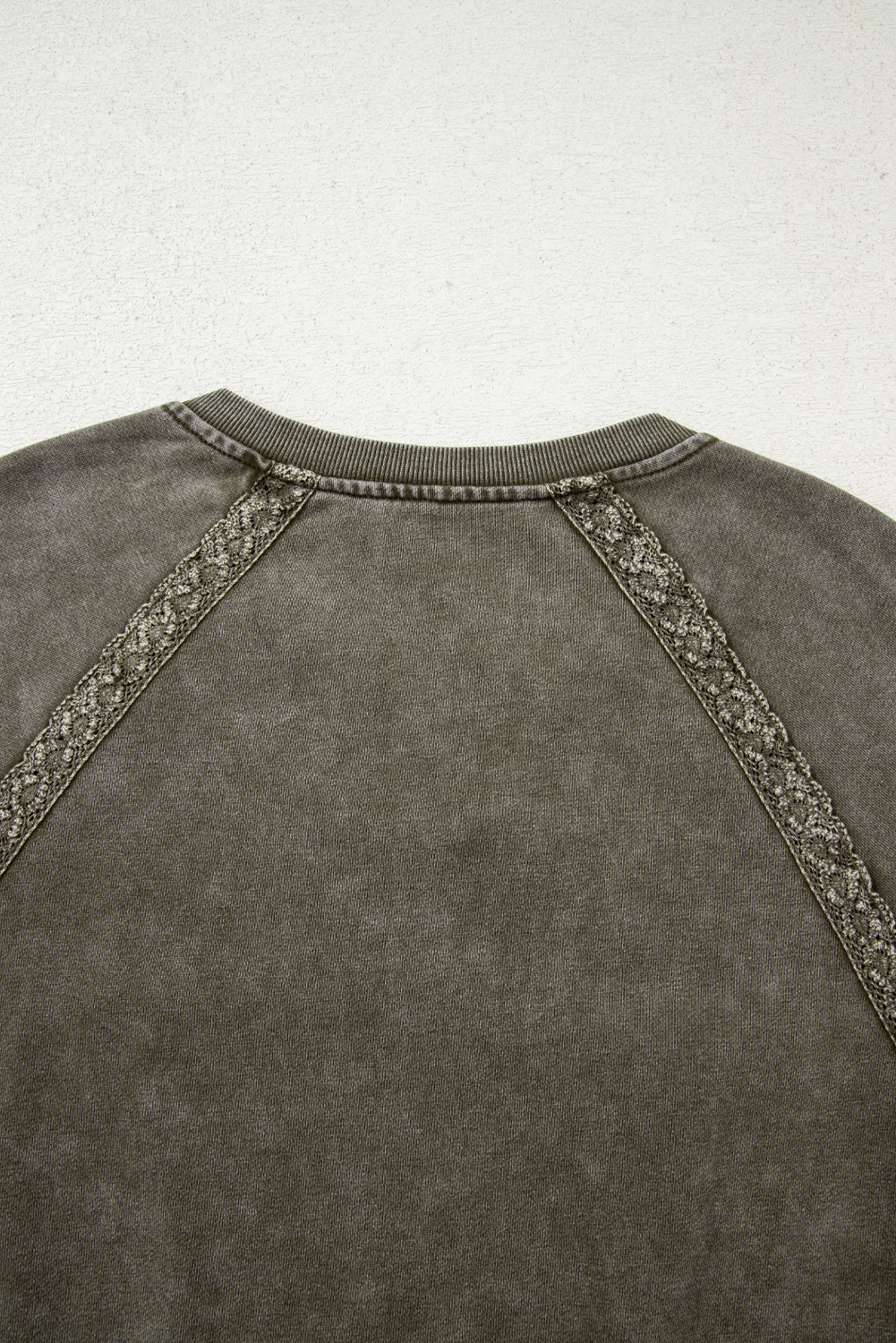 Jungle Green Lace Patchwork Detail Notched Neck Mineral Wash Baggy Sweatshirt