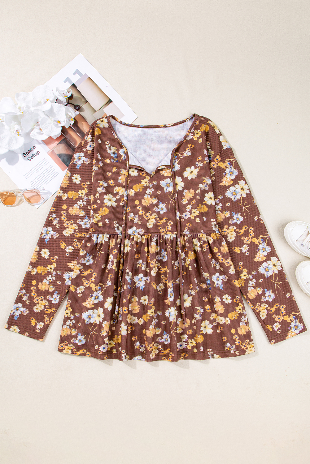 - The floral pattern adds charm to this elegant babydoll blouse.