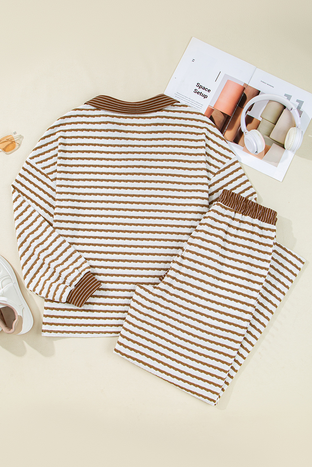 A contrast polo collar, drop shoulder design, and contrast drawstring.