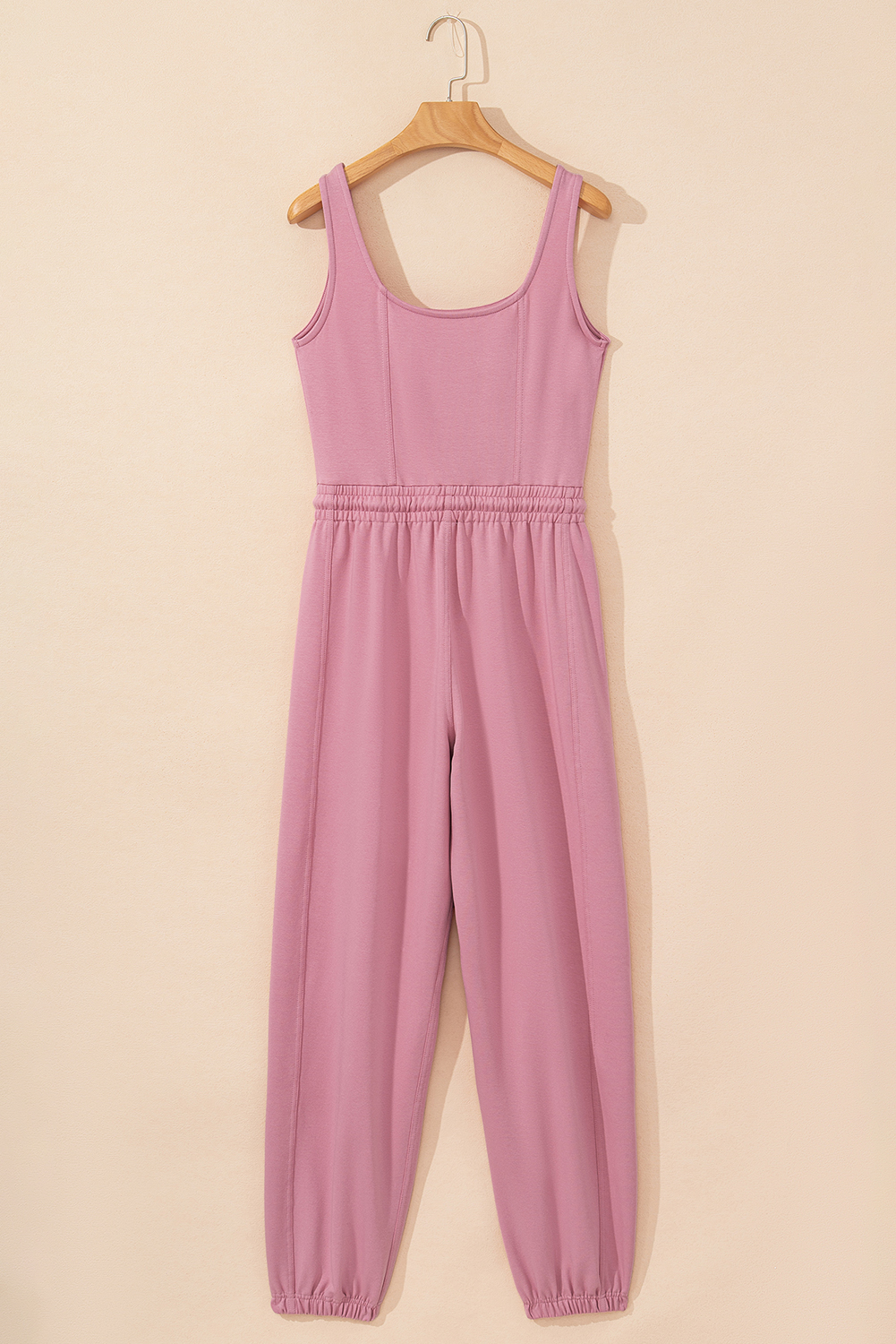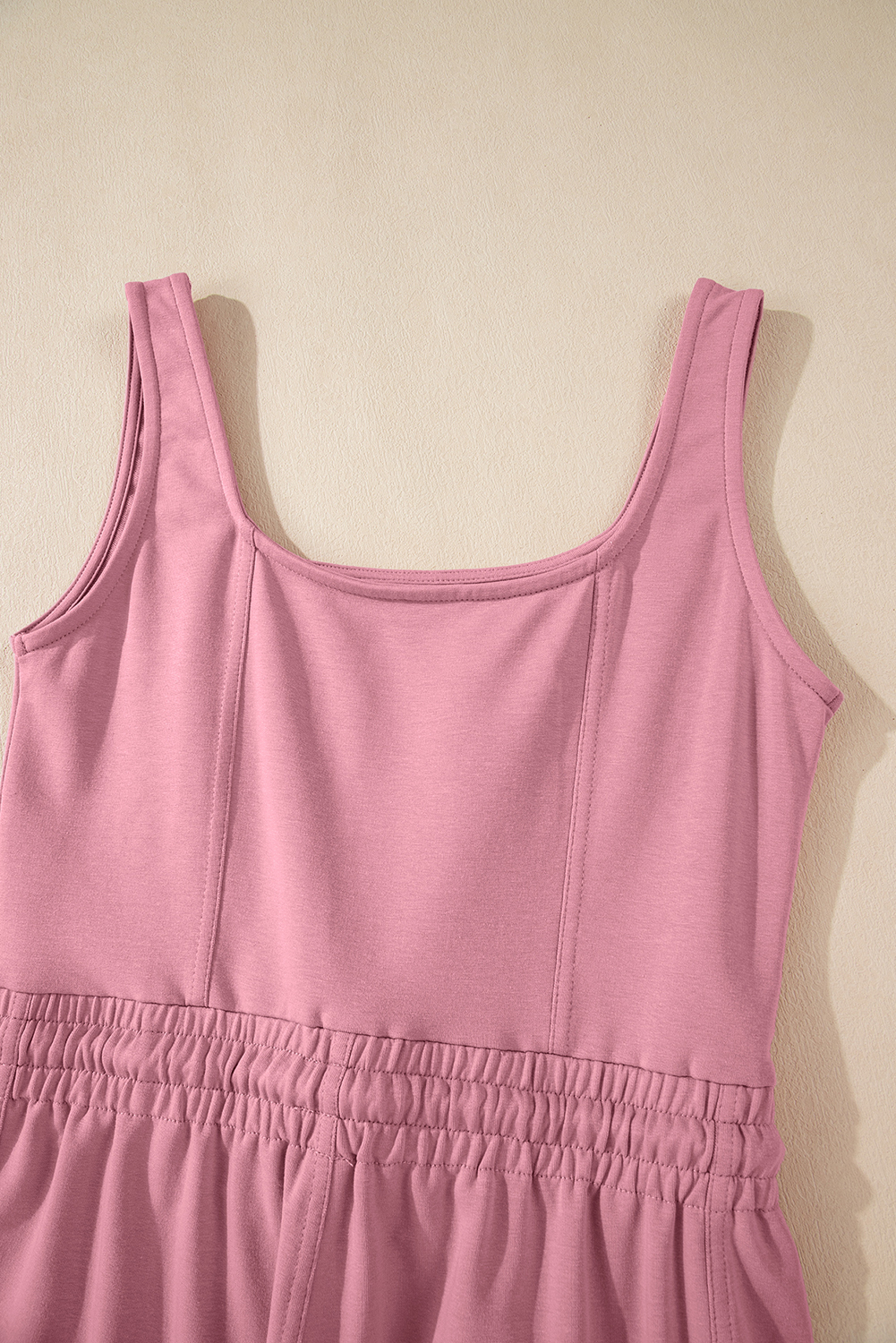 Be the first to review “Light Pink Lace-up Elastic Waist Sleeveless Square Neck Jumpsuit”