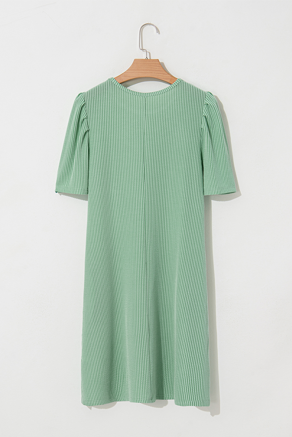Be the first to review “Mint Green Sequin Clover Graphic Puff Sleeve Corded T Shirt Dress”