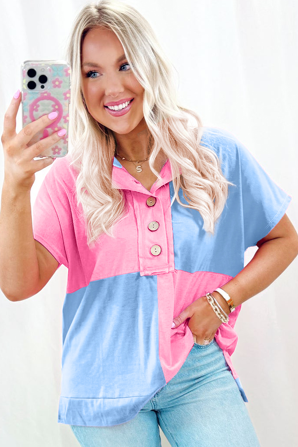 - This T-shirt features a fashionable two-tone color scheme that adds a pop of contrast and visual interest.