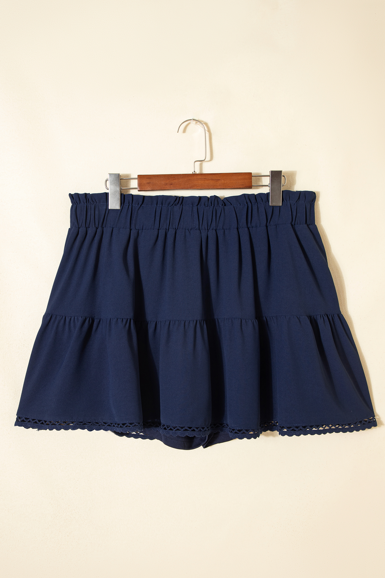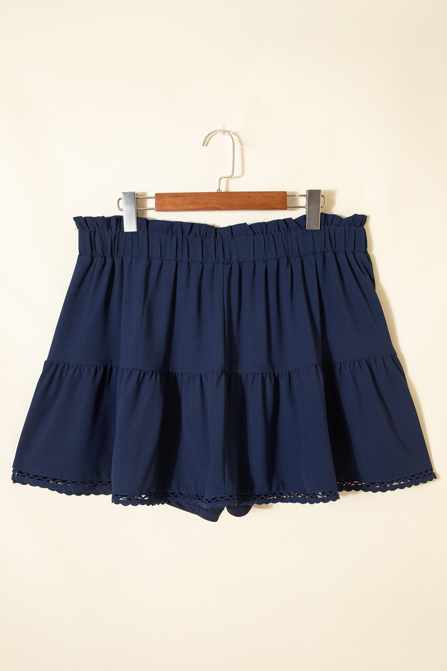Featuring a flowy ruffled silhouette with lace-trim wide legs.
