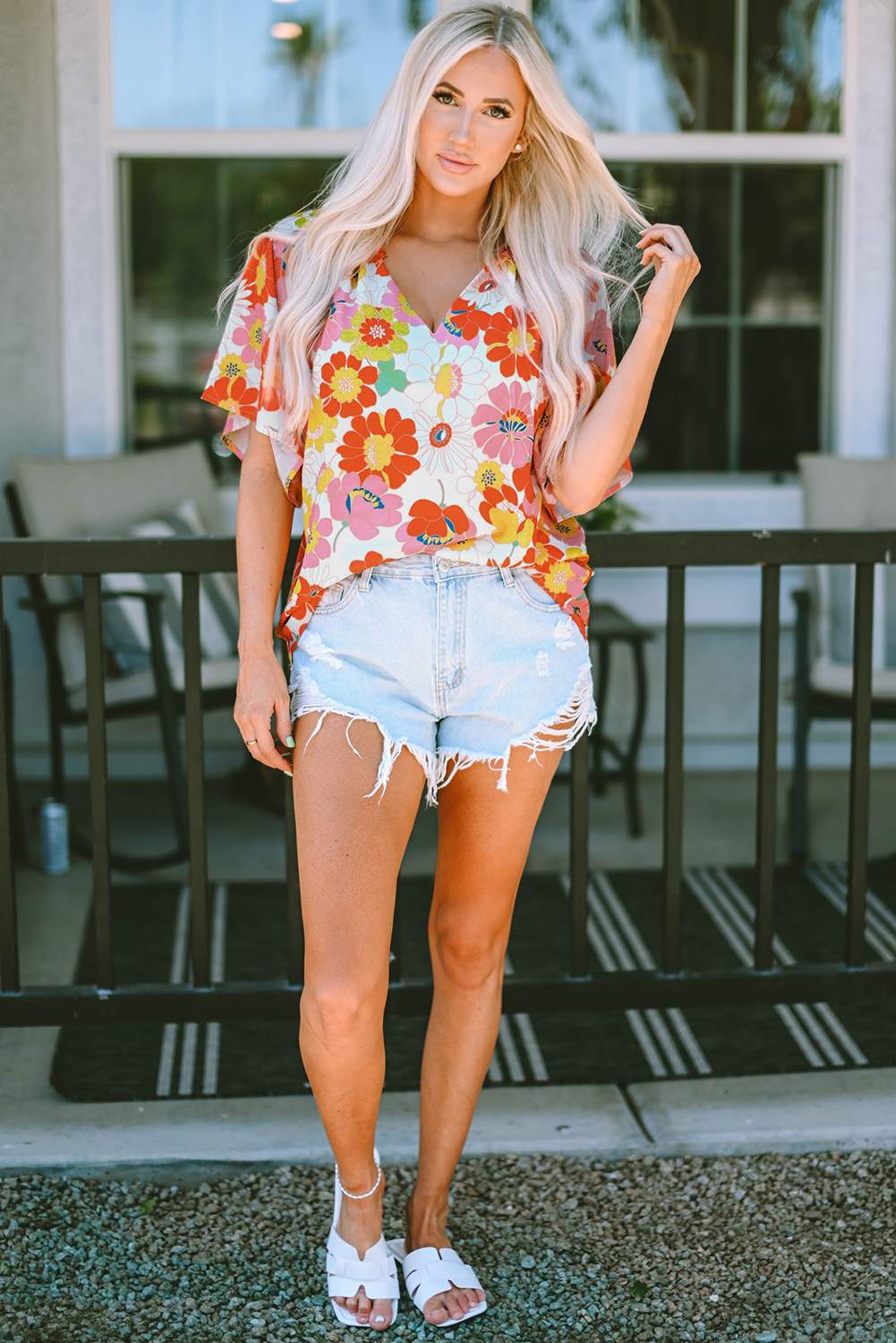 • This loose blouse creates a relaxed and effortless look