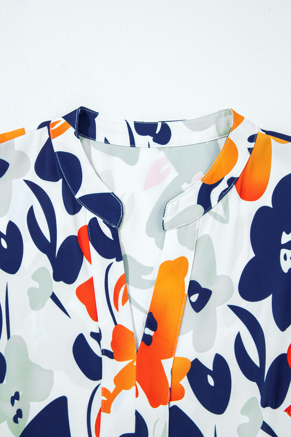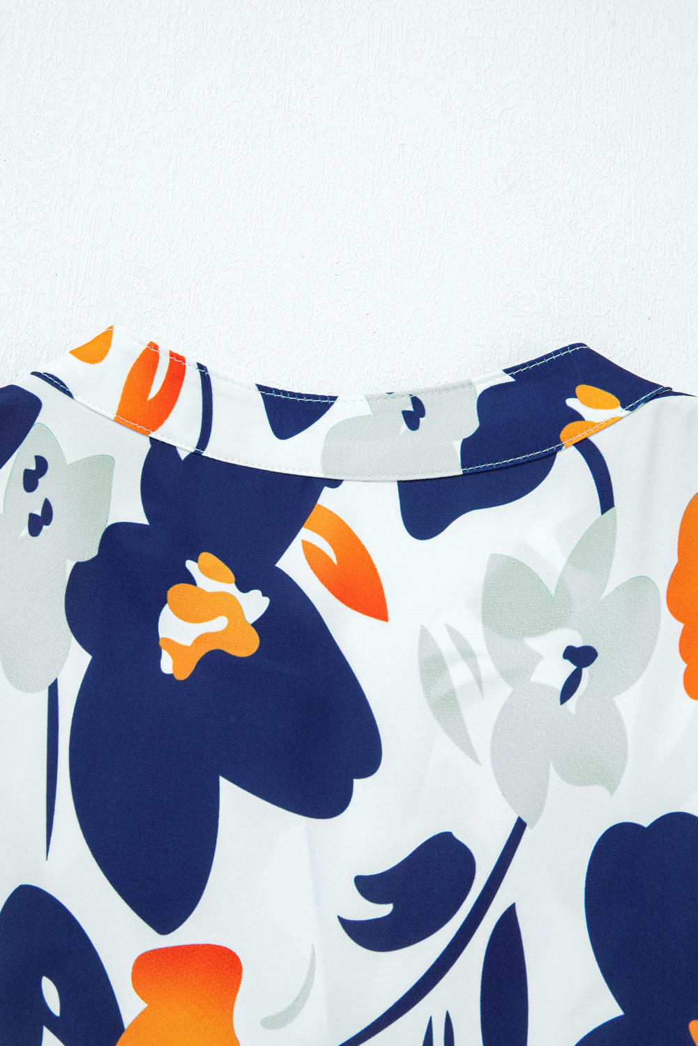 Be the first to review “Orange Floral Print Notched Neck Flutter Sleeve Mini Dress”
