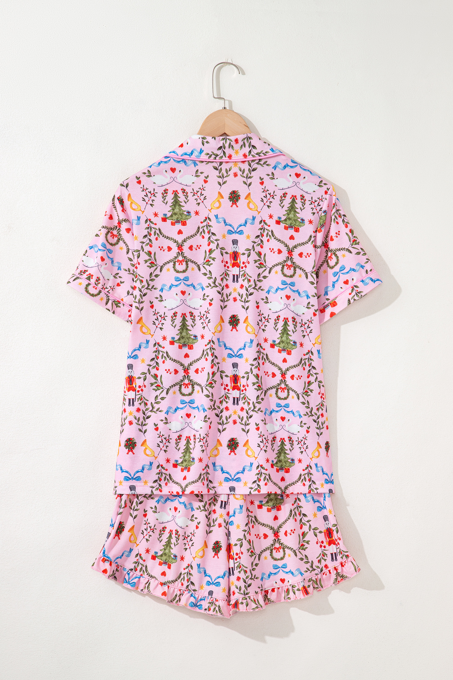 Be the first to review “Pink Nutcracker Doll Christmas Print Ribbon Tie Waist Short 2pcs Pajama Set”