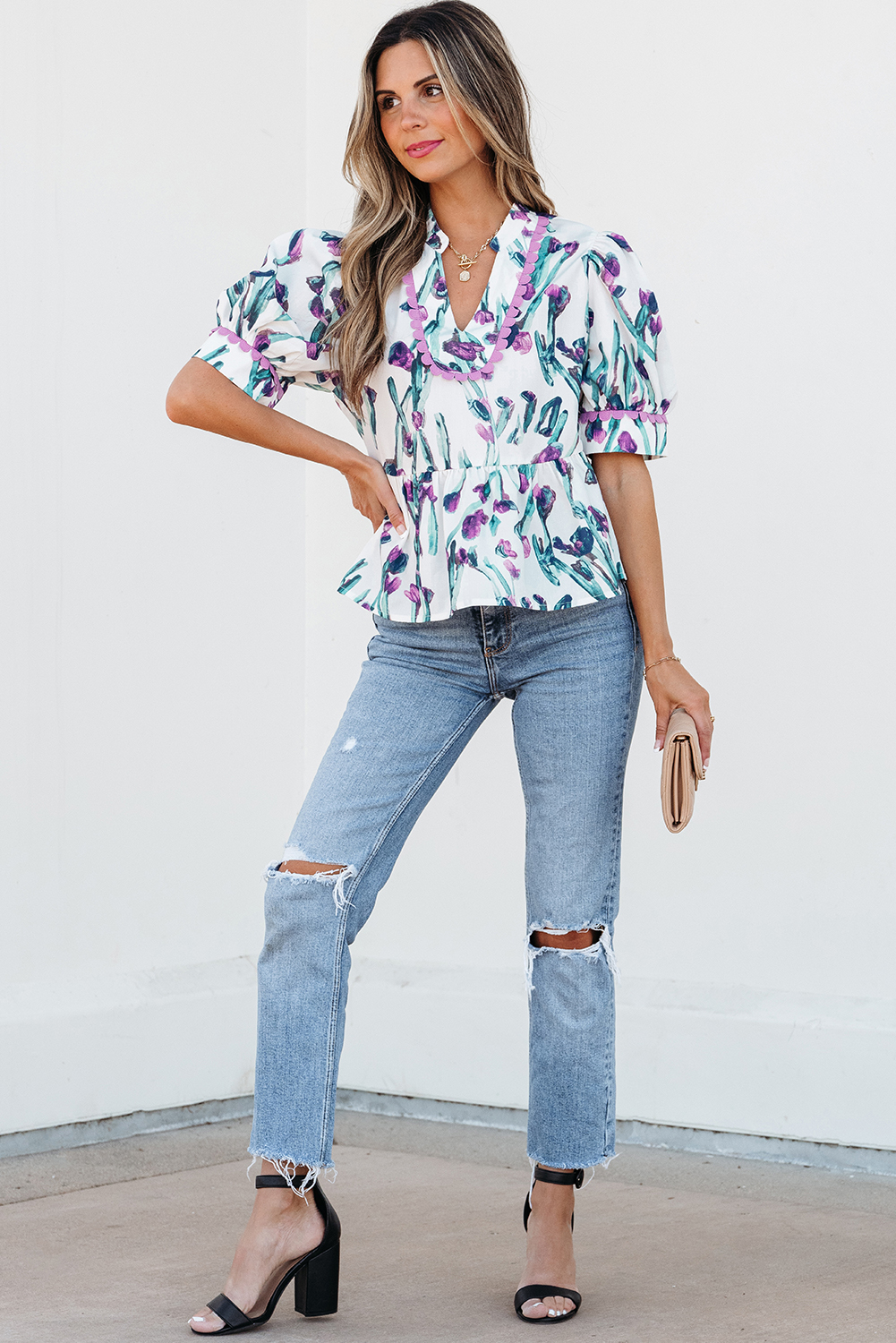 Be the first to review “Purple Floral Ricrac Trim Half Sleeve Peplum Top”