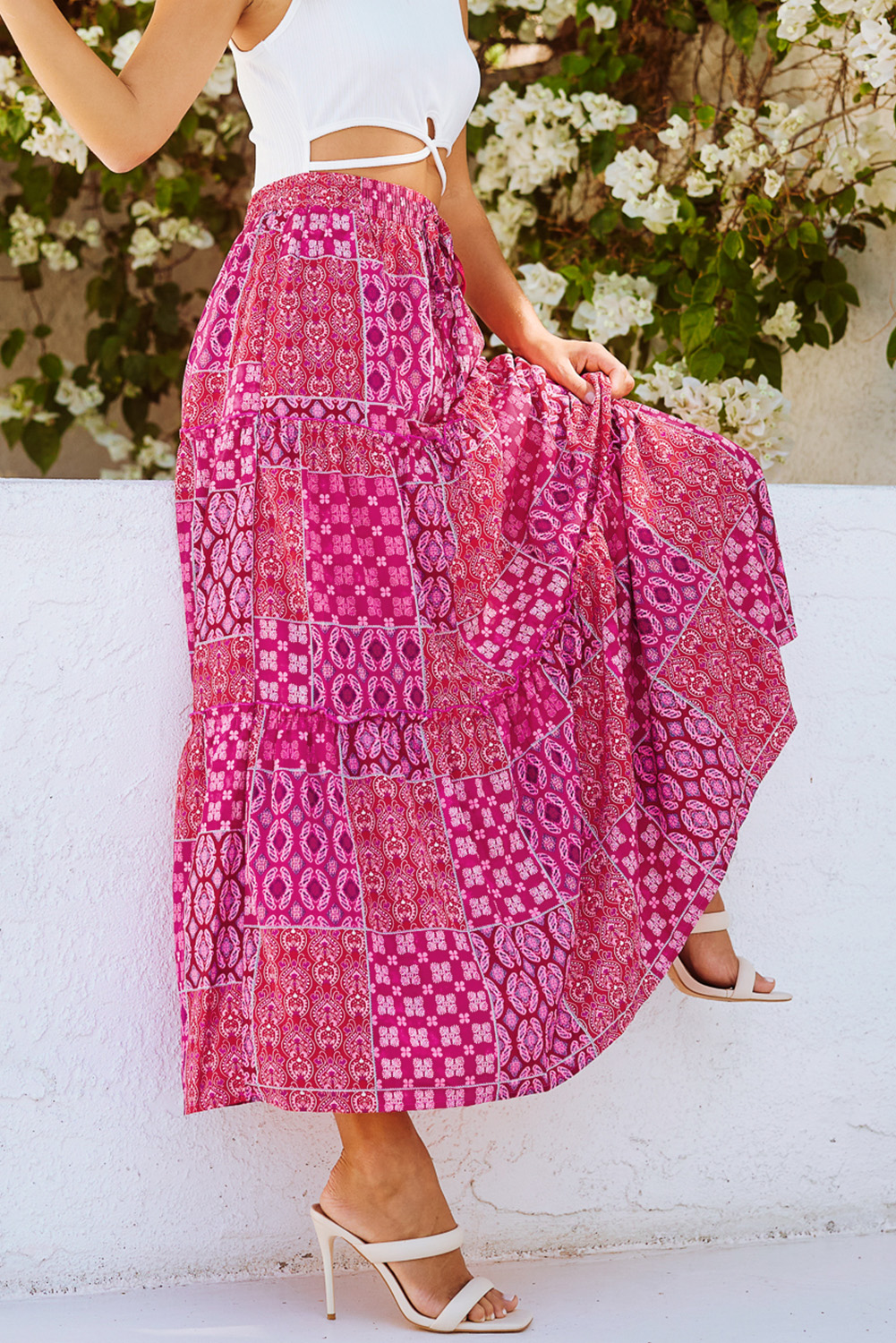 Be the first to review “Purple Tiered Paisley Print Pocketed Maxi Skirt”