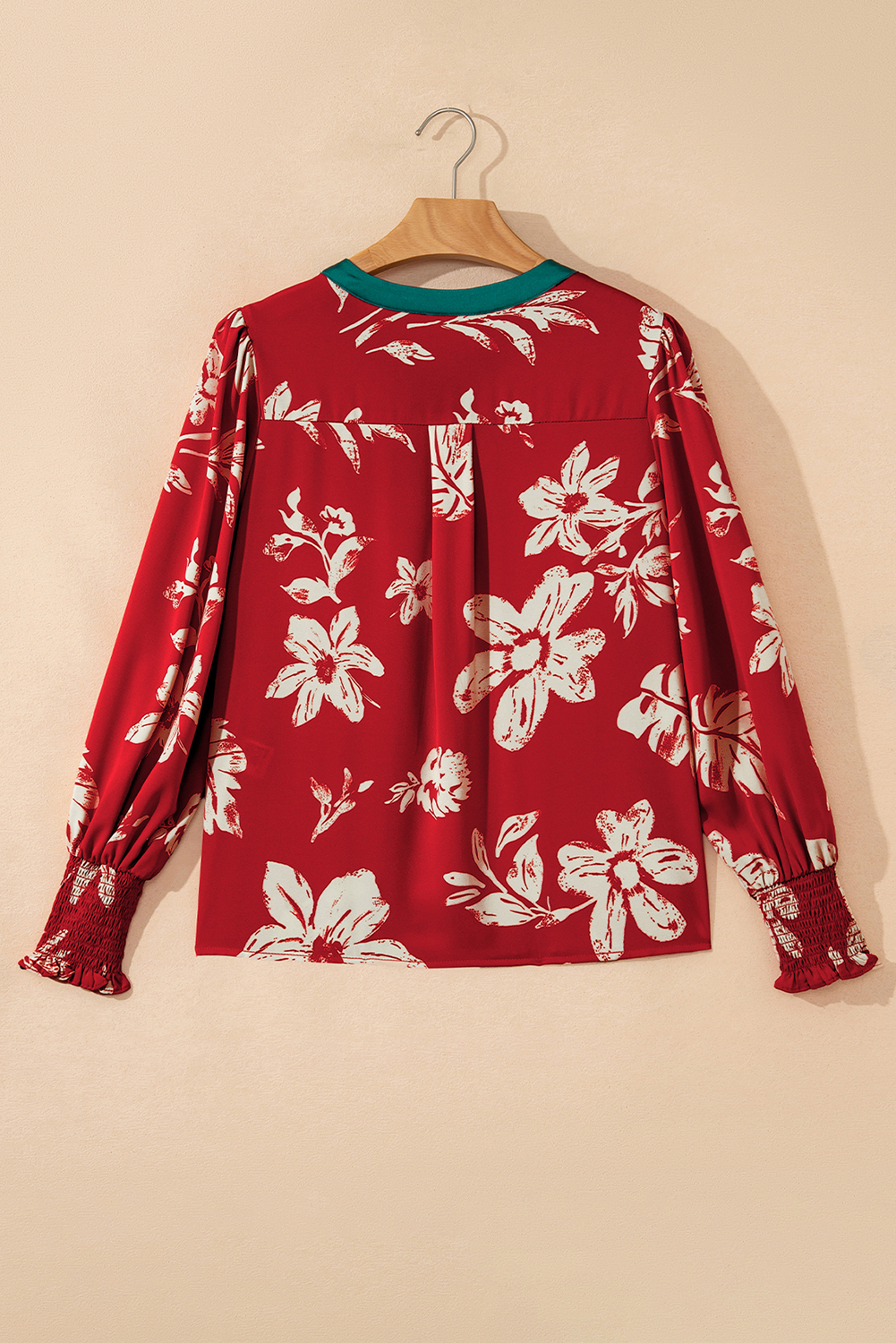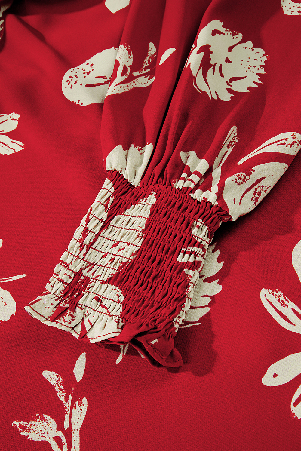 The shirred puff sleeve design makes this floral blouse more graceful.