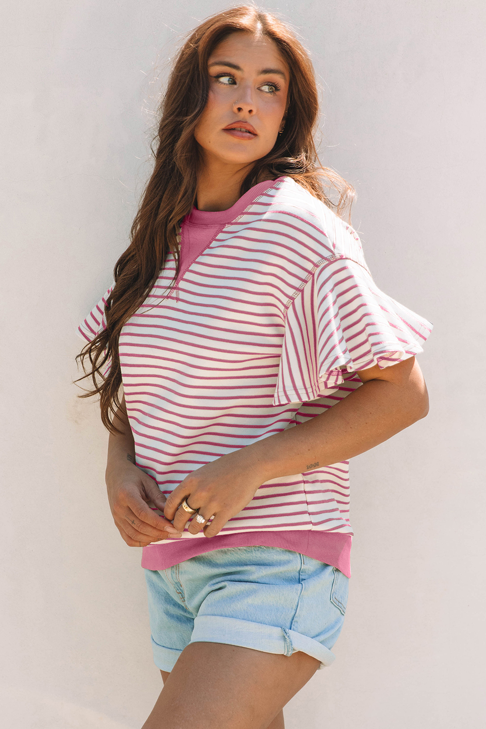 - It has a loose fit with beautiful ruffle short sleeves.