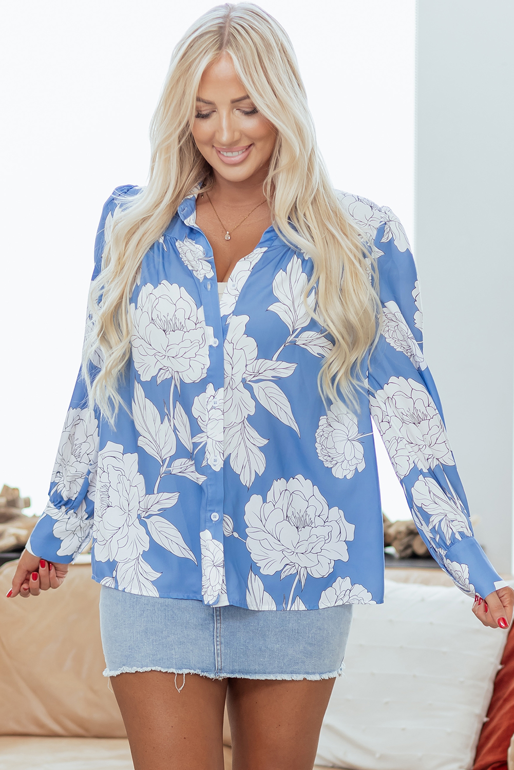 This blue floral shirt pairs well with white jeans or white half skirt.