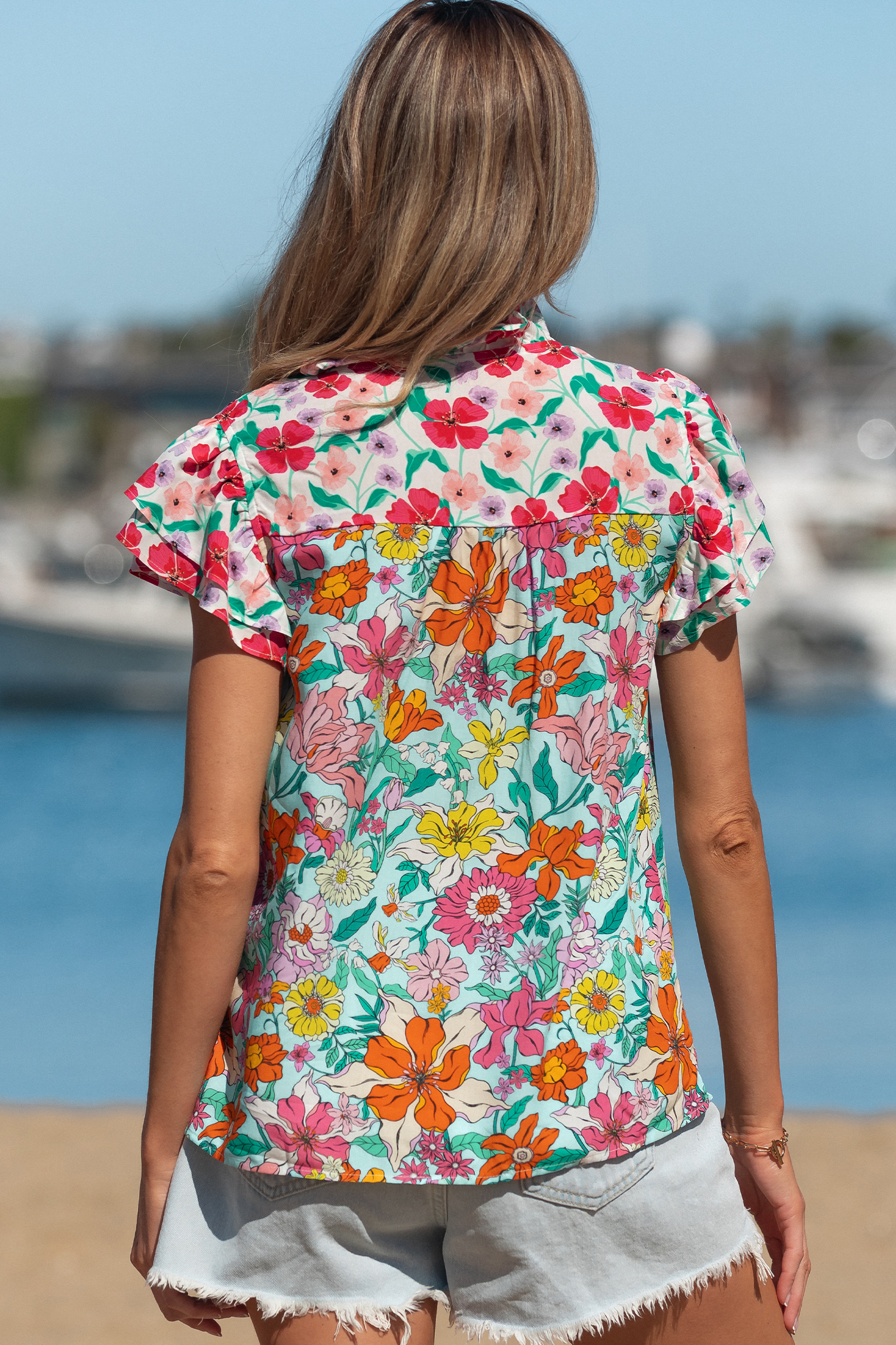 - This summer blouse is stylish and feminine with blooming floral pattern.