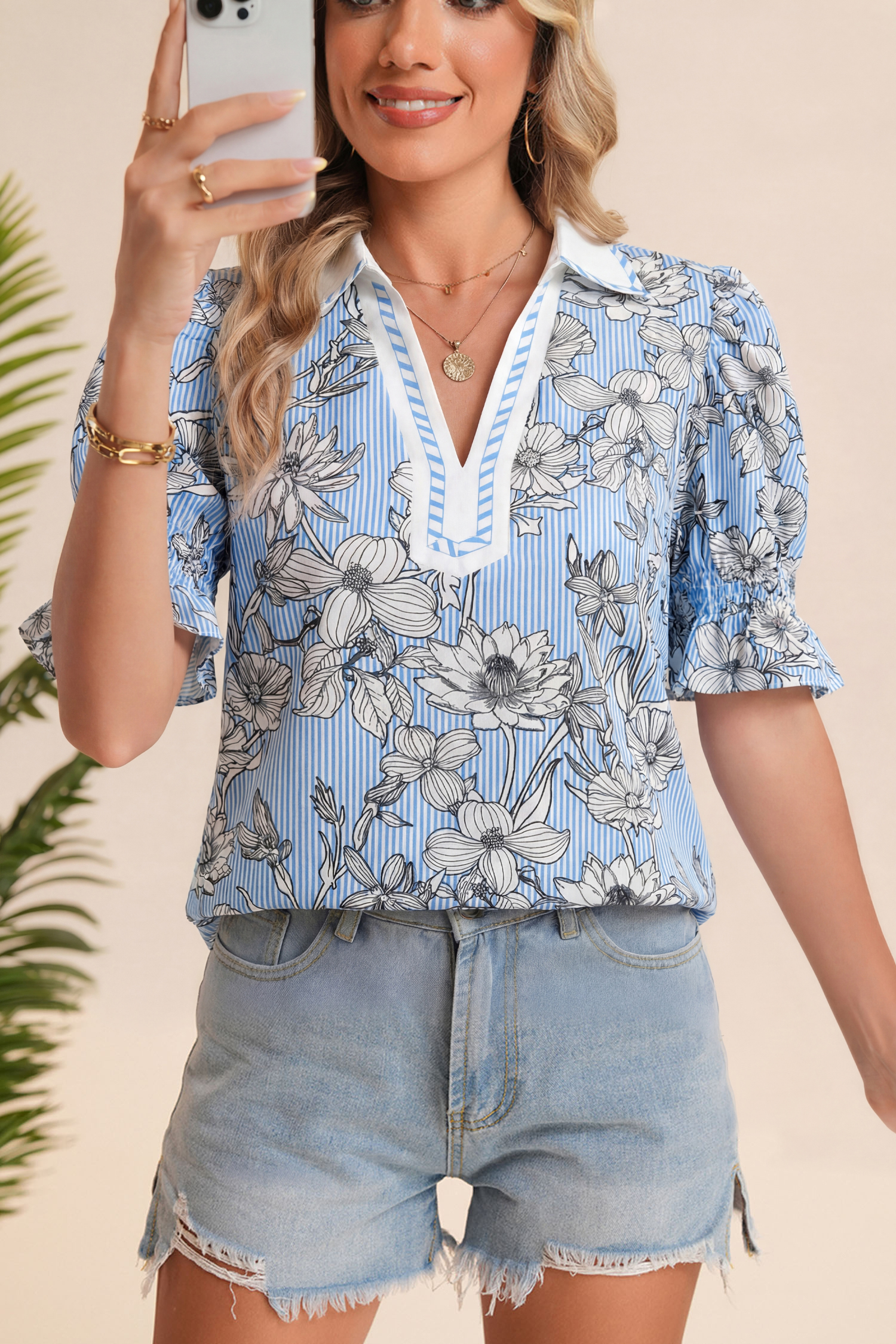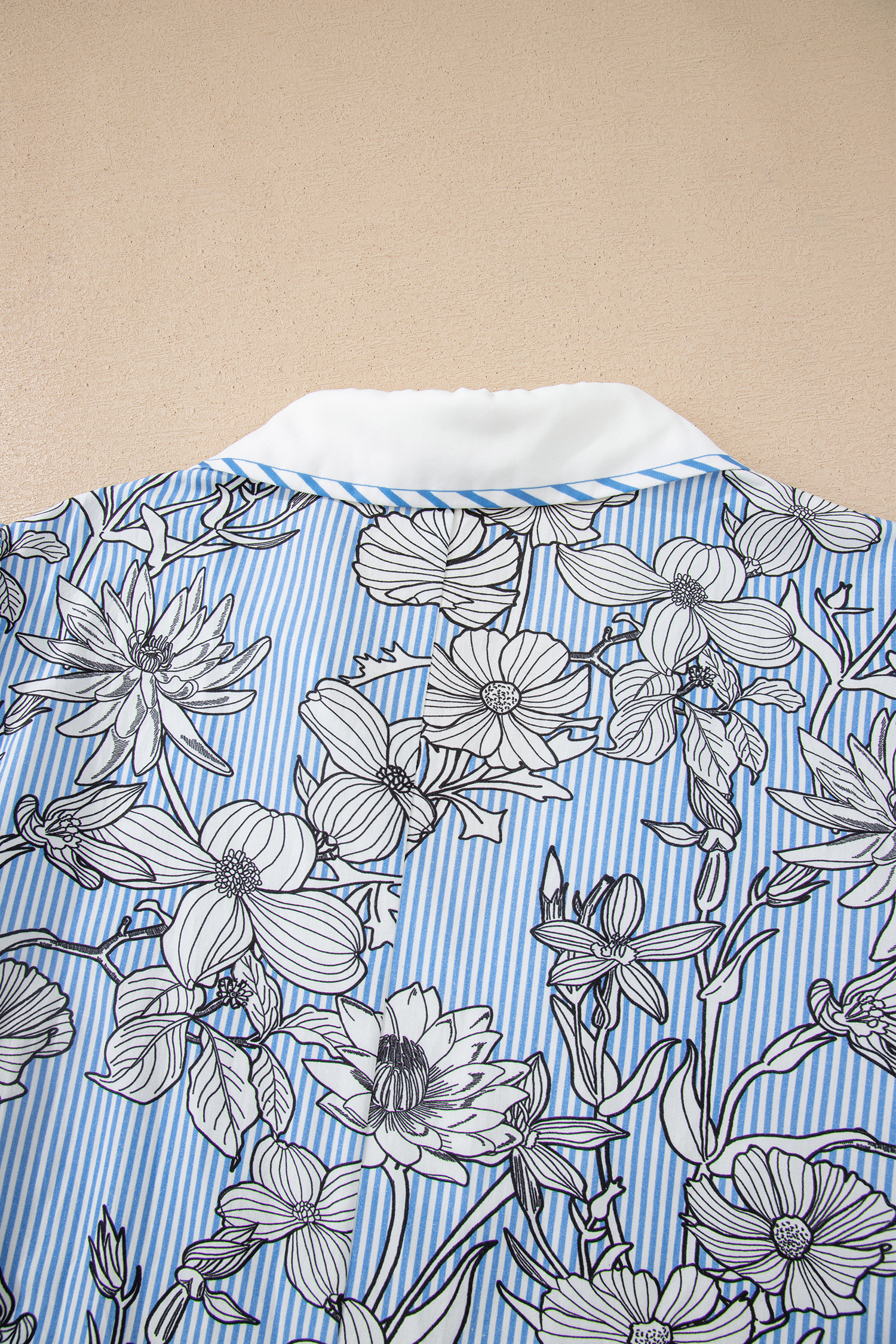 Lightweight fabric keeps the floral striped blouse comfortable all day.
