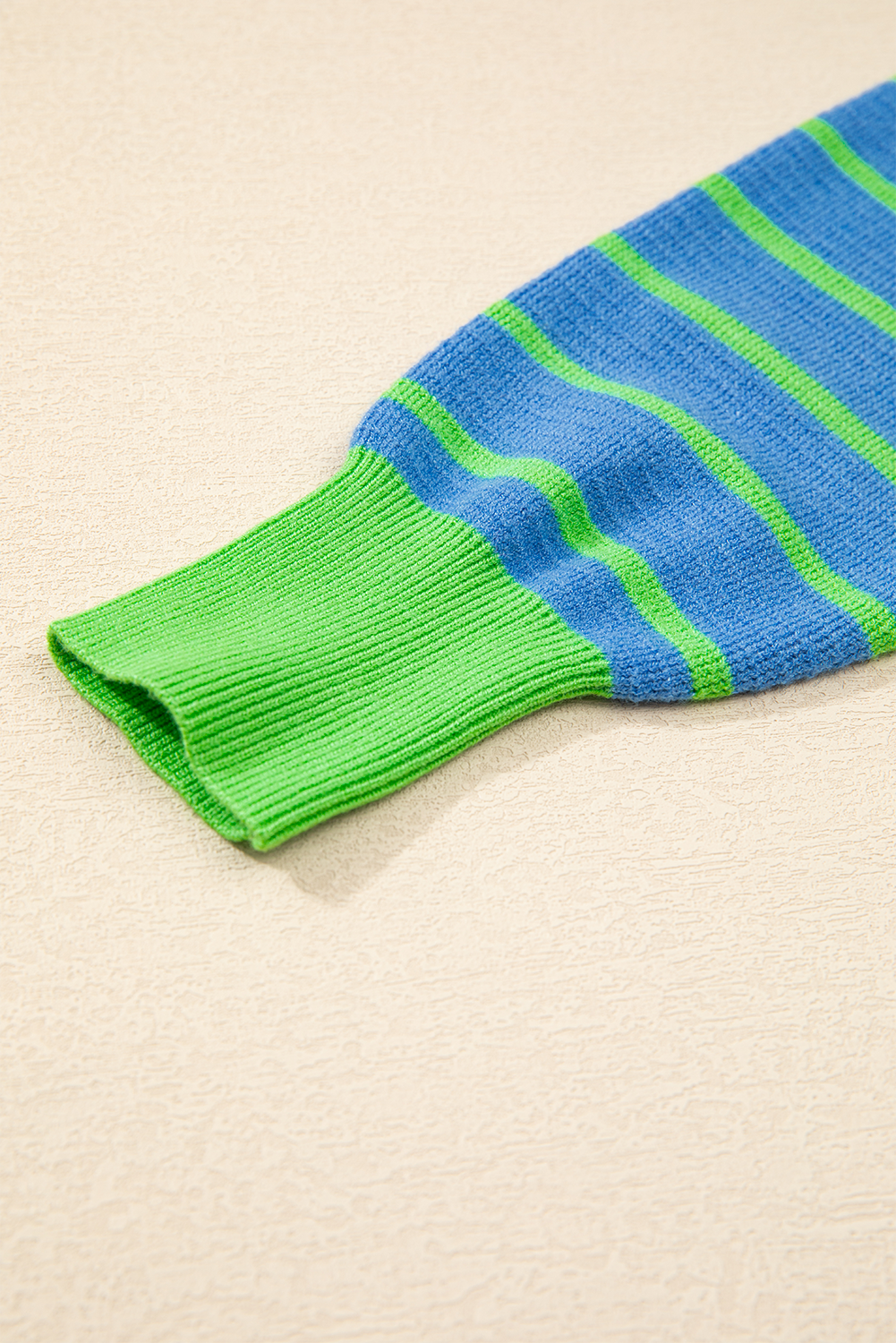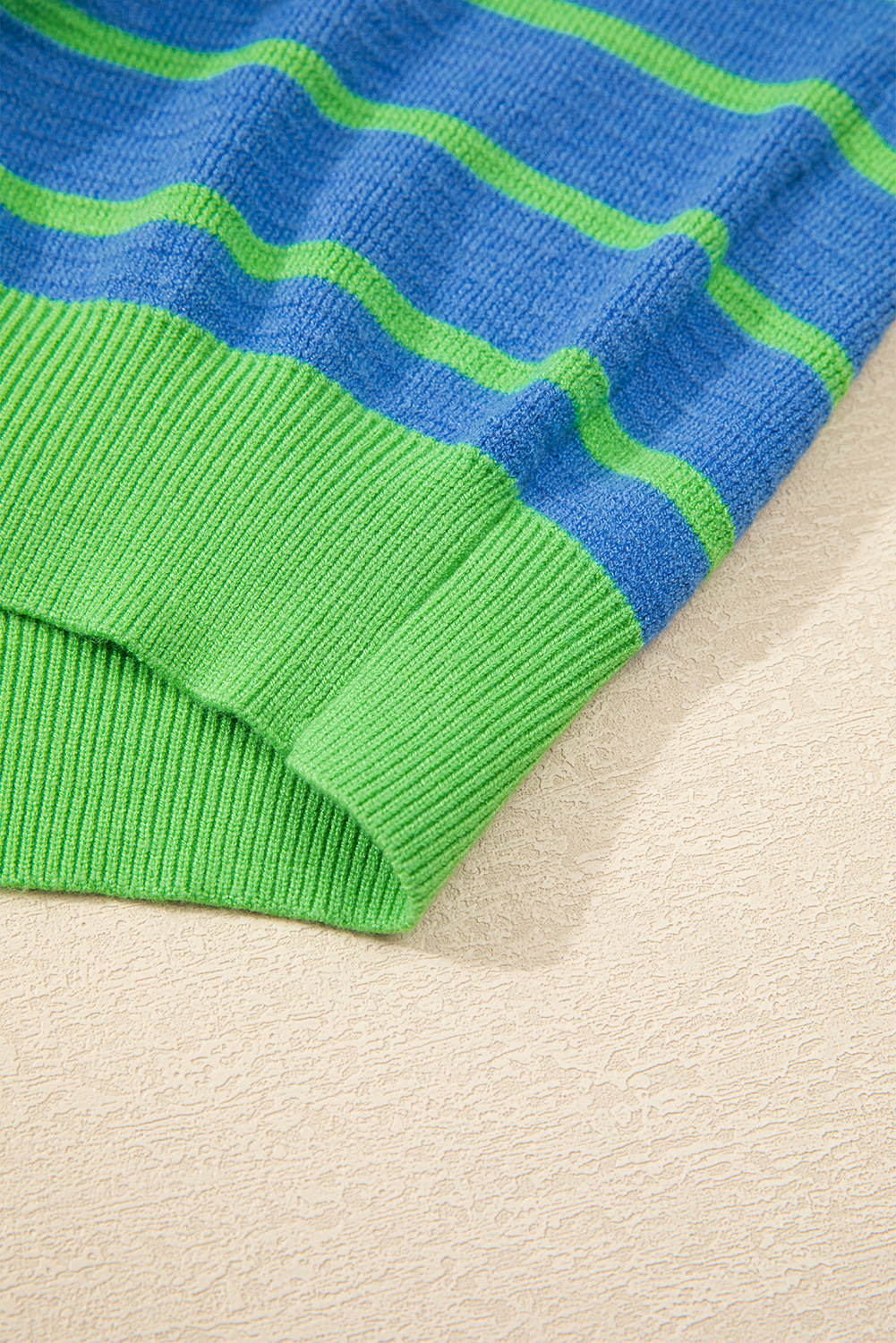 Be the first to review “Sky Blue Stripe Trimmed Round Neck Drop Shoulder Loose Sweater”