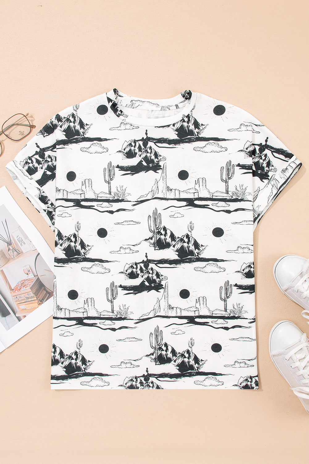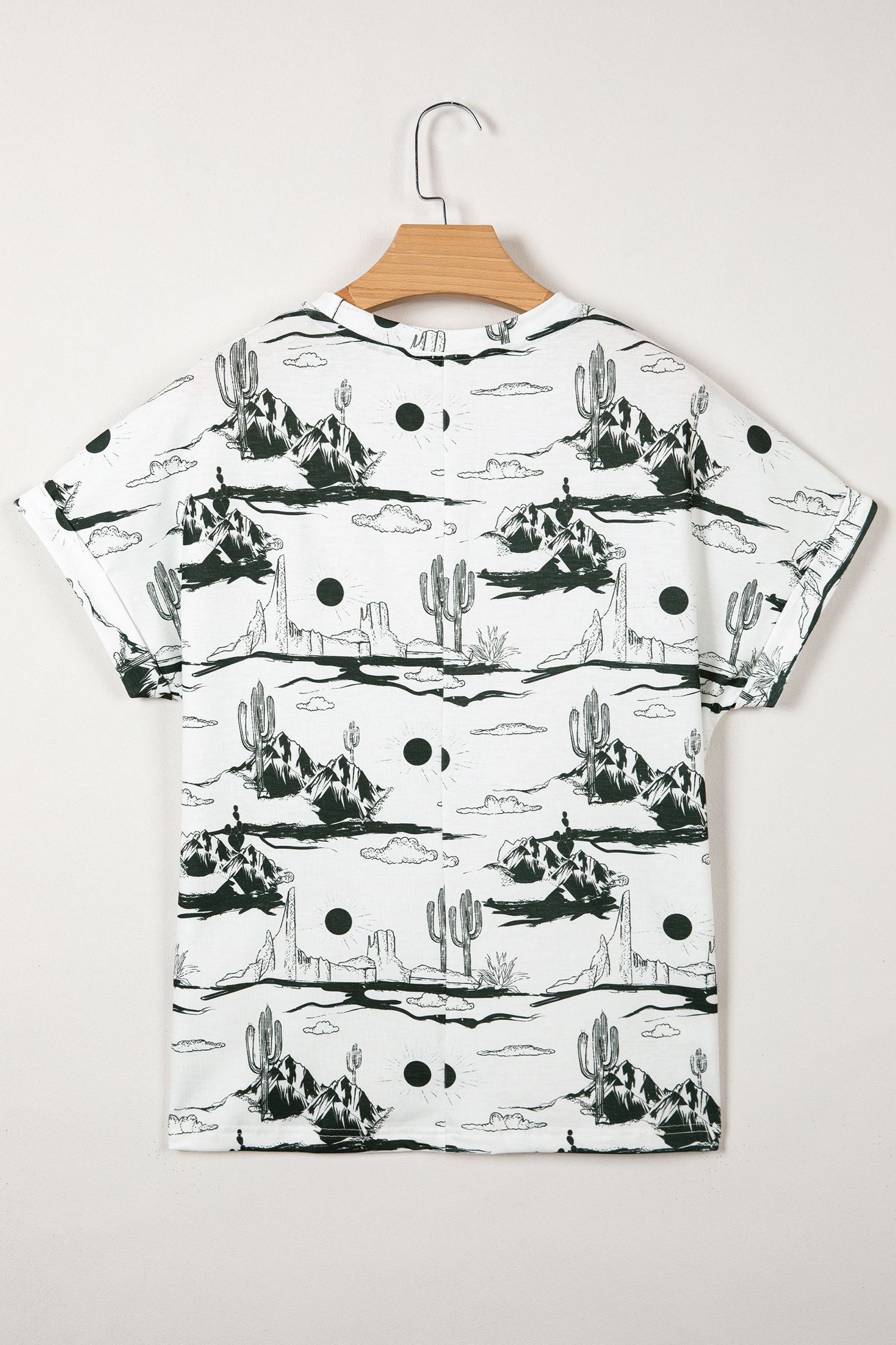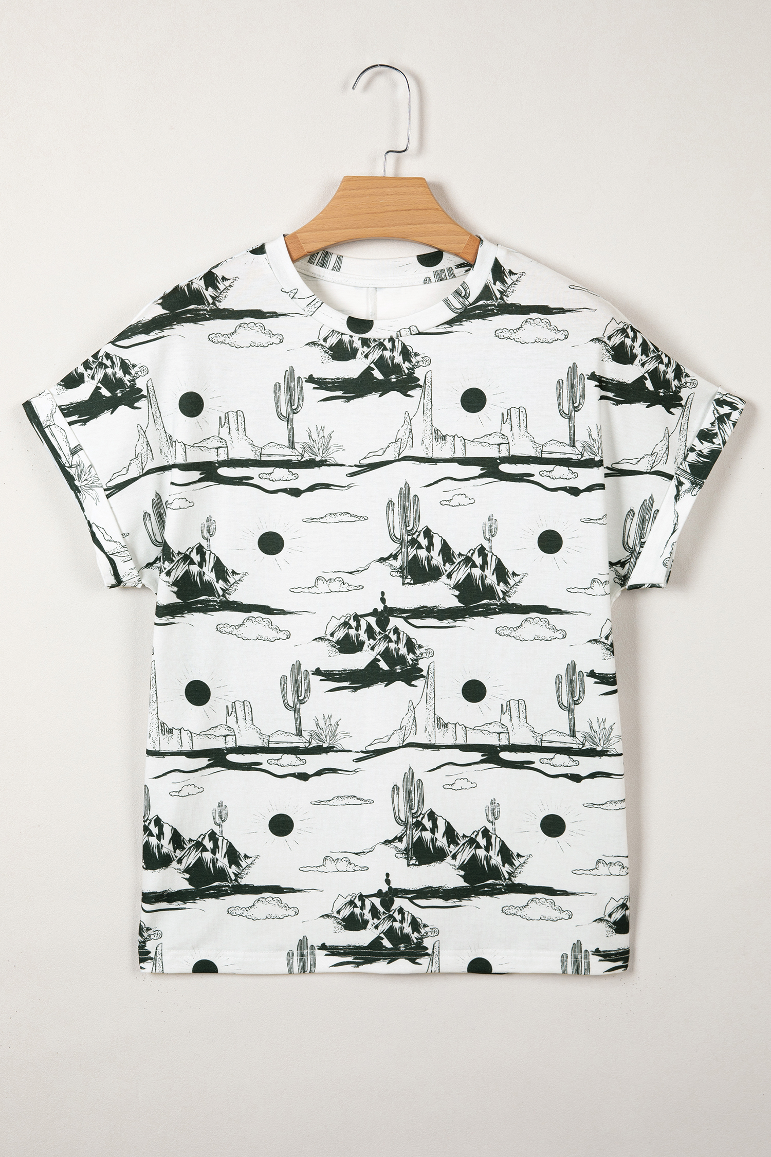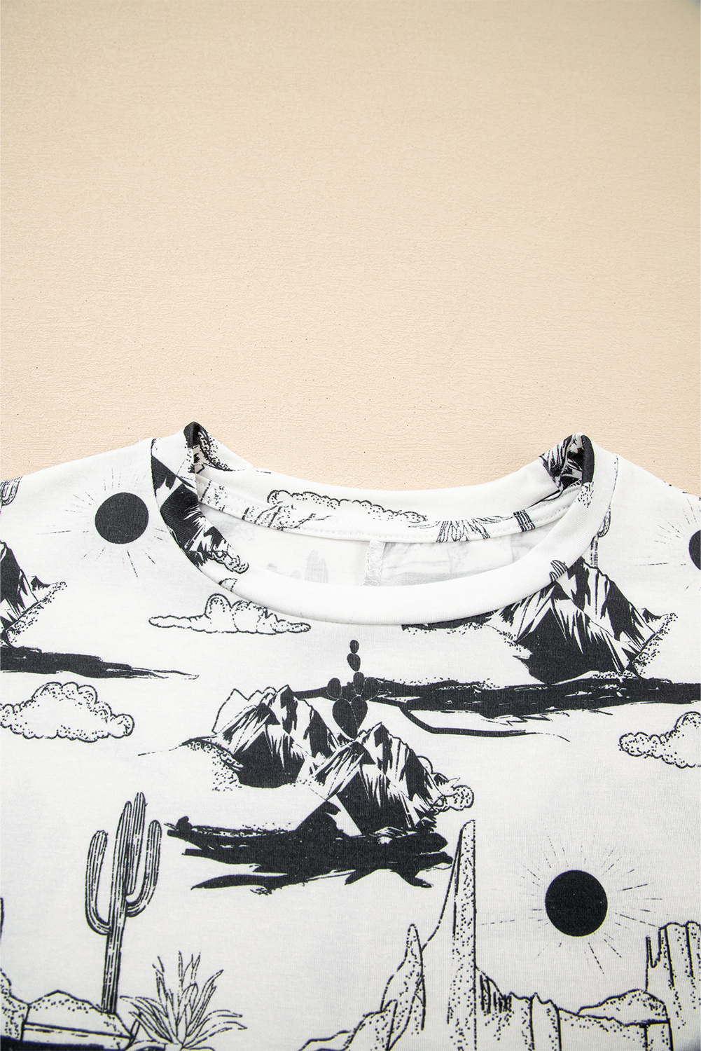 - Embrace the serenity of the desert with our Desert Sand Print Short Sleeve Knit Top.