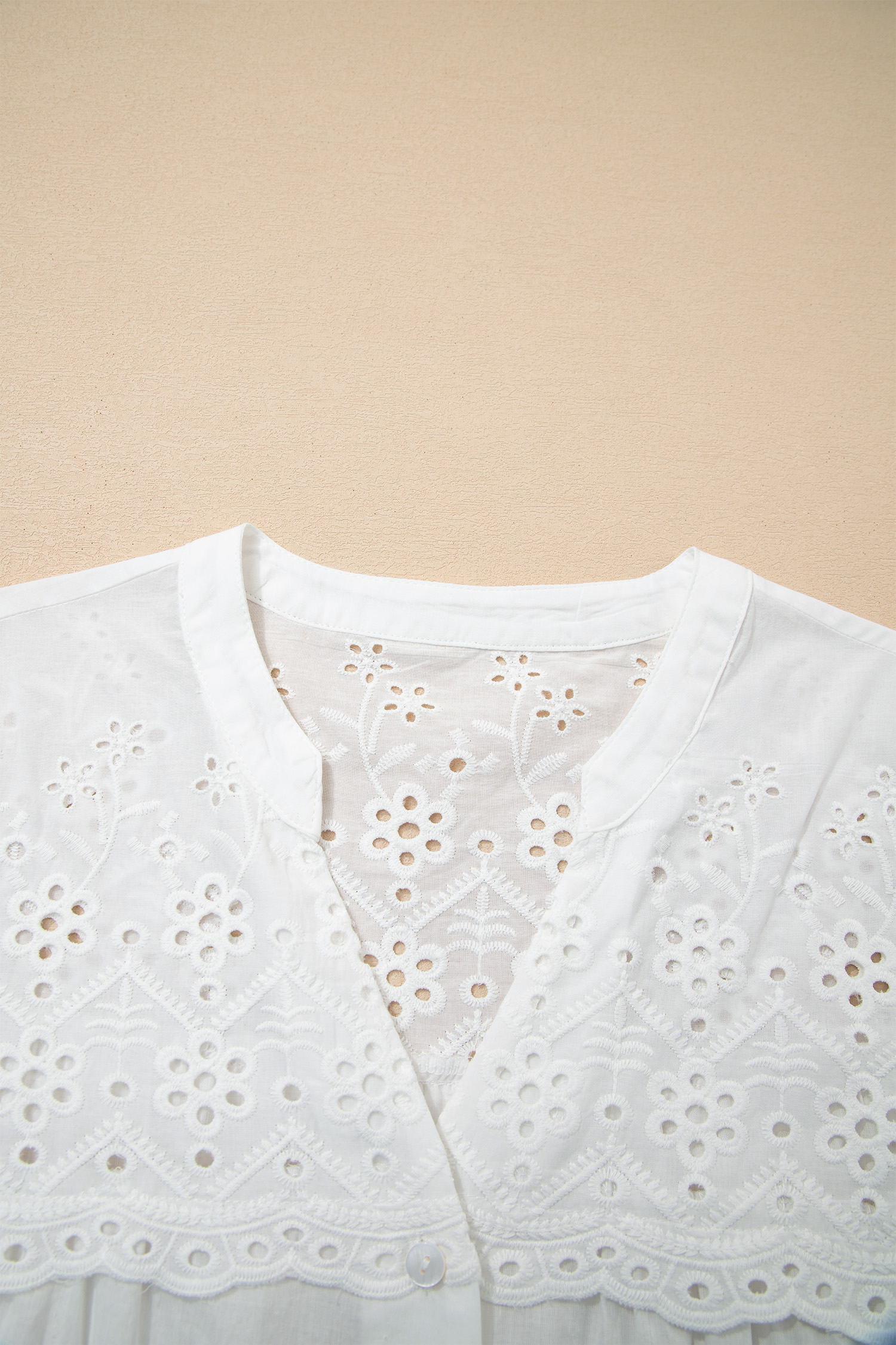 - Eyelet embroidered shirt delivers delicate detail with a light, feminine look.